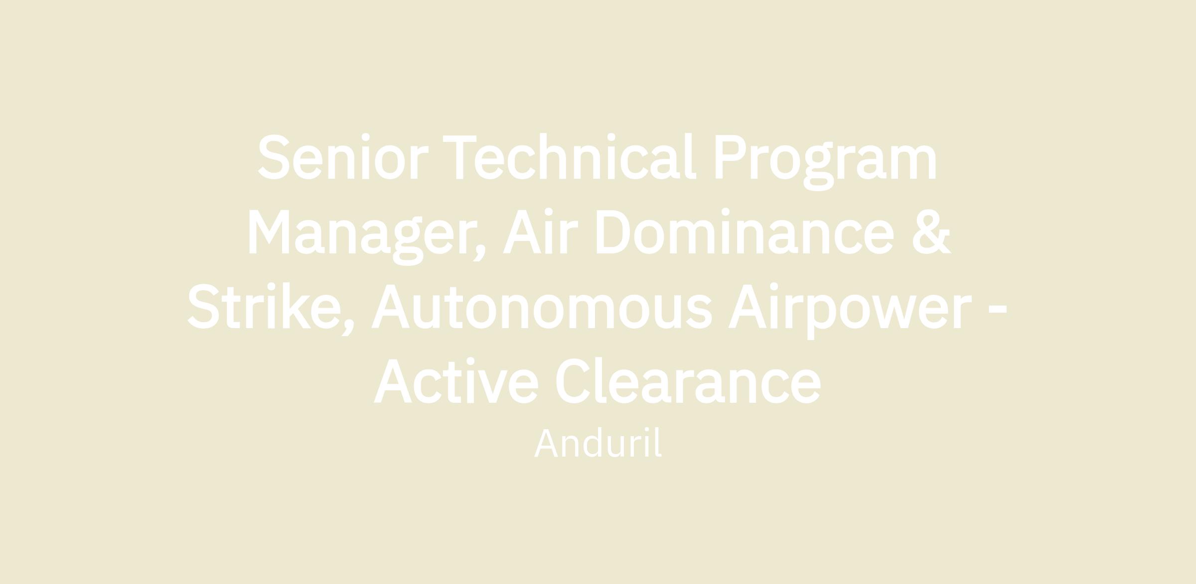 Senior Technical Program Manager, Air Dominance & Strike, Autonomous Airpower - Active Clearance