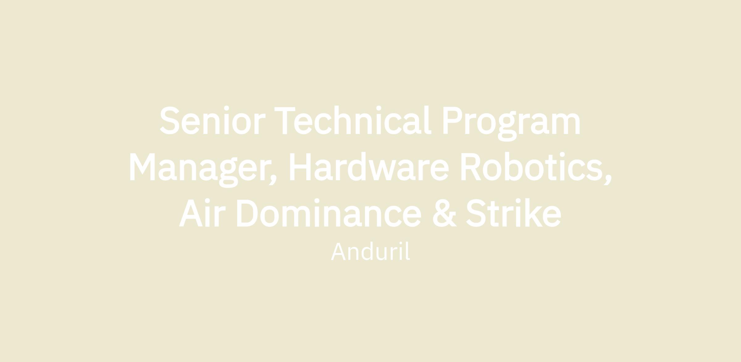 Senior Technical Program Manager, Hardware Robotics, Air Dominance & Strike