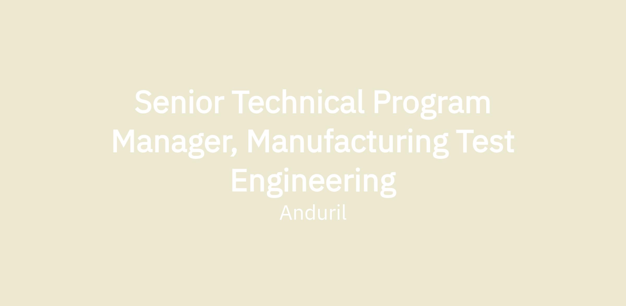 As a Project Manager for the Manufacturing Test Engineering team, you will be the connective tissue within the production organization to support the development of automated test equipment and systems for production. The manufacturing test team is responsible for the design, integration, and deployment of automated testing solutions across Anduril factories. As a member of this team, you will have the opportunity to help define what manufacturing test looks like for Anduril at a national scale. This position demands an innovative approach to manufacturing test - helping us advance scalability and lower the barrier to entry into our company systems.