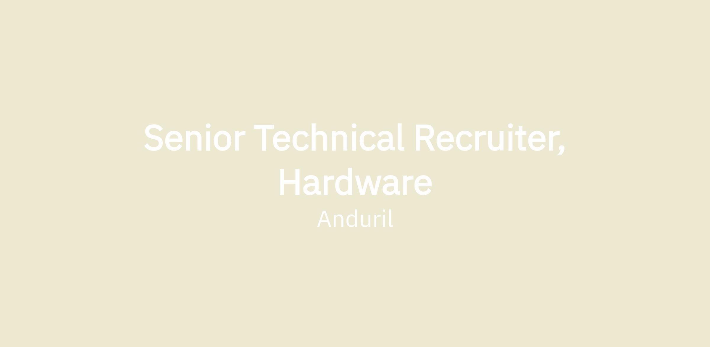 At Anduril, our recruiting team is the driving force behind building a world-class organization. We are passionate, innovative, and deeply committed to finding exceptional talent that fuels our mission. By collaborating with leaders across engineering, operations, and technology, we shape and execute hiring strategies that are as dynamic and forward-thinking as the company itself. Our team thrives in a fast-paced environment, setting the standard for excellence, creativity, and strategic talent acquisition—ensuring that every new hire contributes to Anduril's continued success.