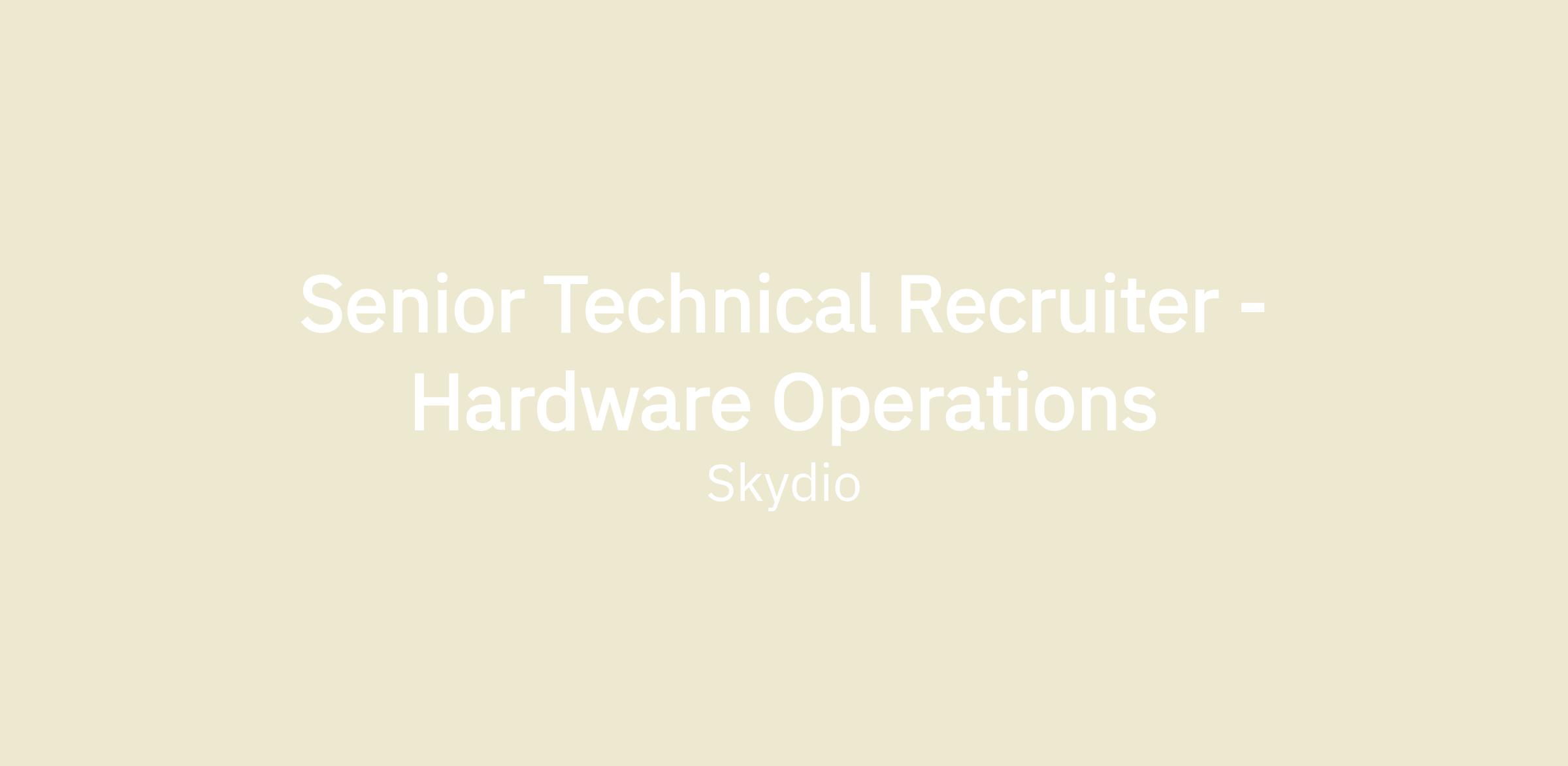 We are seeking a proven Senior Technical Recruiter to help propel Skydio’s Hardware Operations org to new heights via the relentless, hands-on recruitment of elite talent, spanning Manufacturing Engineering, Supply Chain/Logistics, Production, and more. While Hardware Operations will be your primary focus, you'll also contribute across other areas within R&D, such as Flight Test and Hardware Engineering, as needed. If you thrive on scaling industry-defining startup teams and are excited to help build the world’s first great flying robot company, we would love to hear from you.