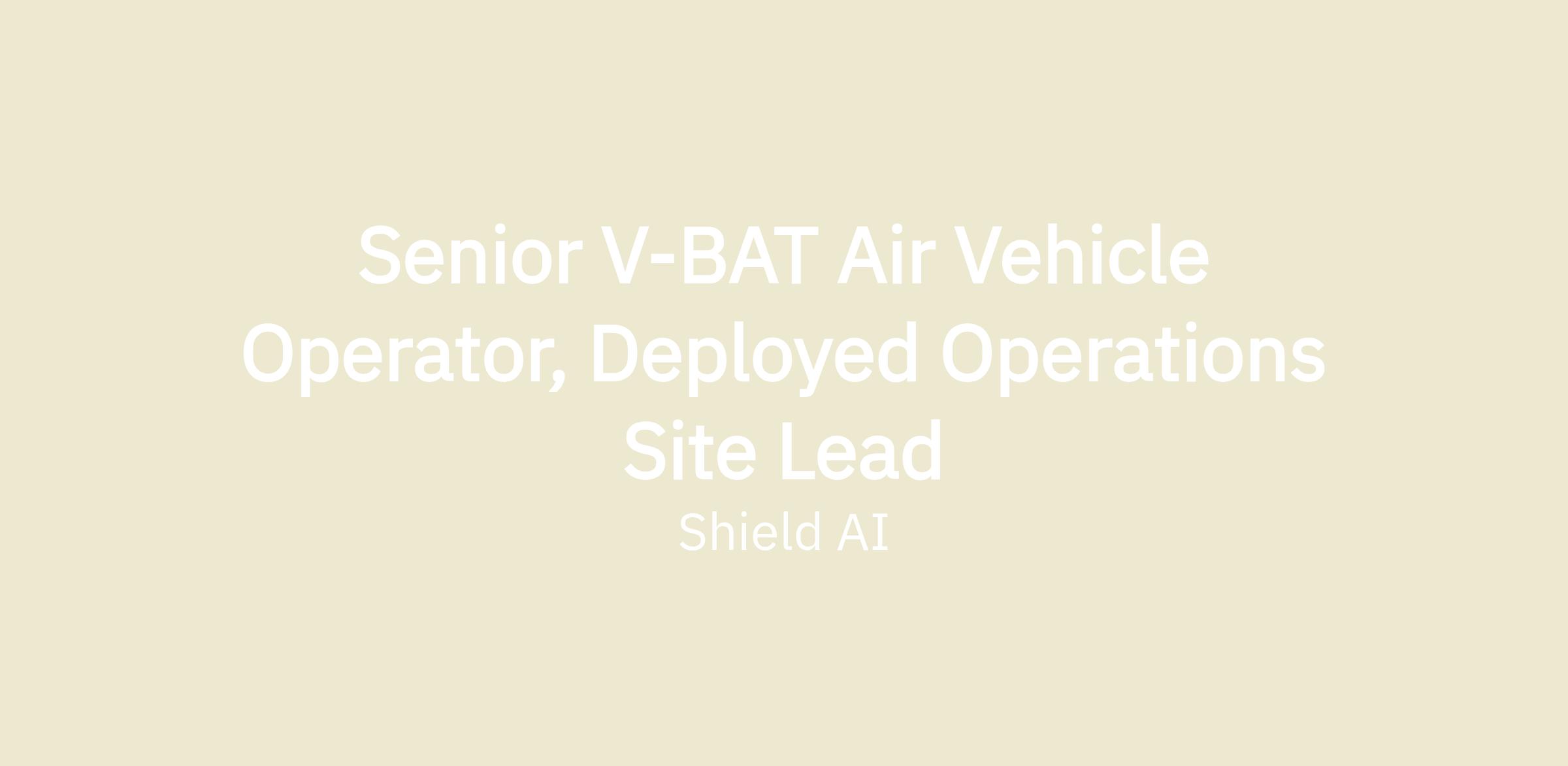 Senior V-BAT Air Vehicle Operator, Deployed Operations Site Lead