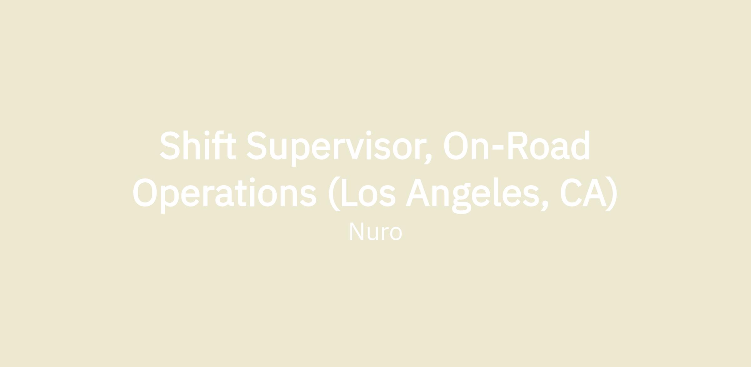 Our In-Vehicle Team is looking for a Shift Supervisor to build a best in class AV operator team to successfully execute on our operational missions and meet Nuro’s challenging goals. As a Front Line manager, you will be responsible for hiring & onboarding operators, actively managing their growth & performance and leading continuous improvement processes and projects. You will work closely with cross functional stakeholders within operations and with other teams to ensure the team’s work remains a valuable part of the company’s metrics.