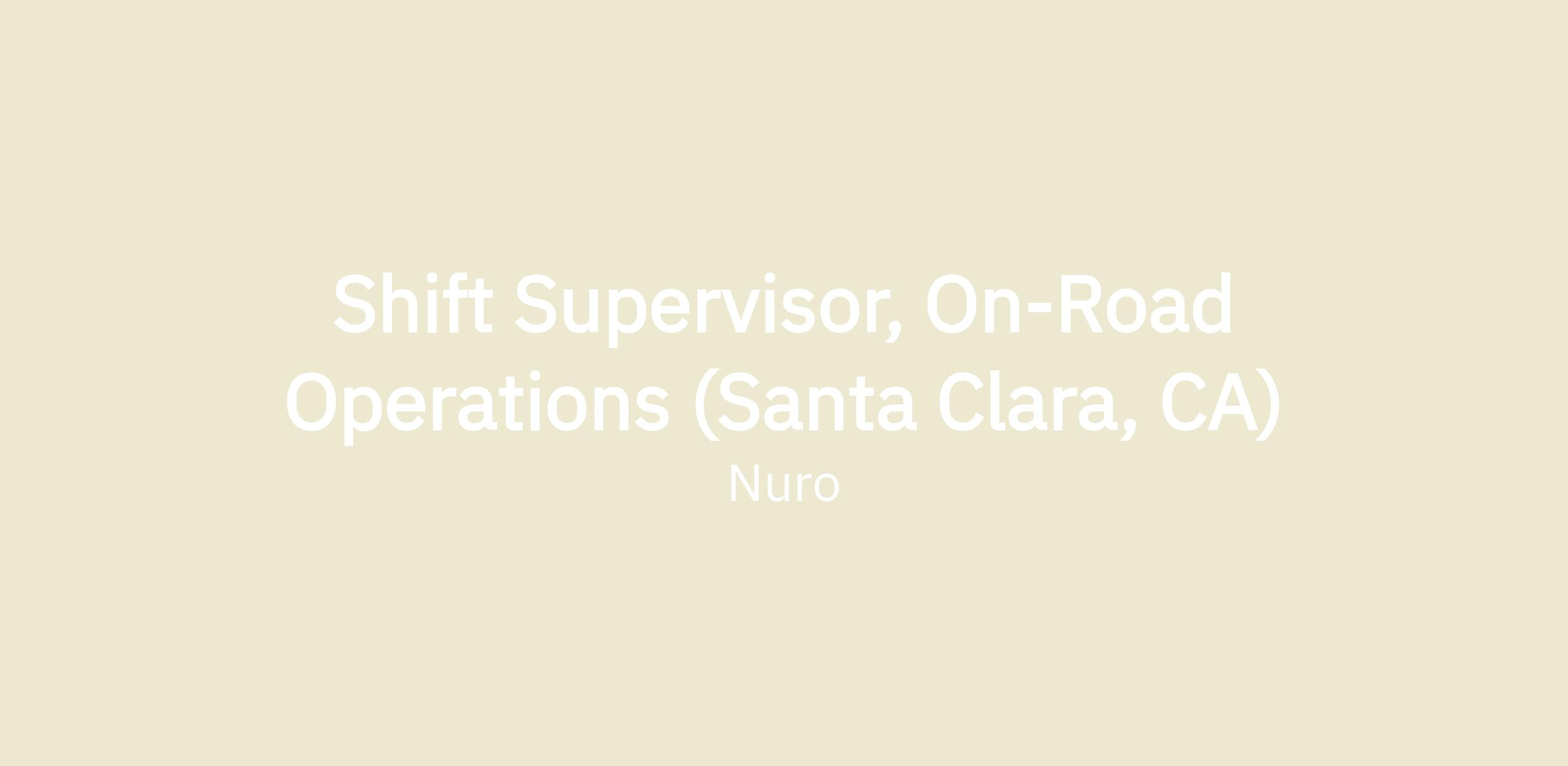 Our In-Vehicle Team is looking for a Shift Supervisor to build a best in class AV operator team to successfully execute on our operational missions and meet Nuro’s challenging goals. As a Front Line manager, you will be responsible for hiring & onboarding operators, actively managing their growth & performance and leading continuous improvement processes and projects. You will work closely with cross functional stakeholders within operations and with other teams to ensure the team’s work remains a valuable part of the company’s metrics.