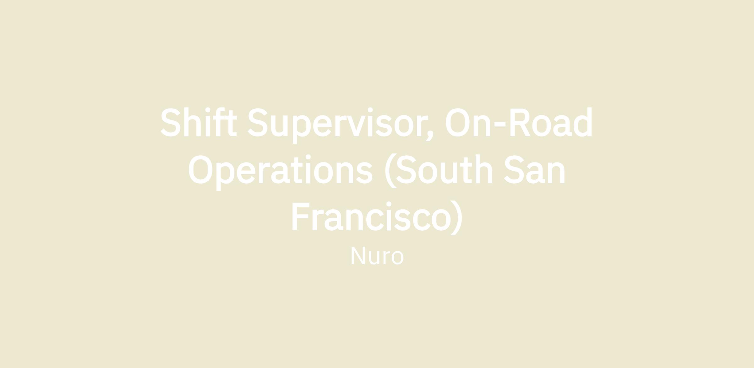 Our In-Vehicle Team is looking for a Shift Supervisor to build a best in class AV operator team to successfully execute on our operational missions and meet Nuro’s challenging goals. As a Front Line manager, you will be responsible for hiring & onboarding operators, actively managing their growth & performance and leading continuous improvement processes and projects. You will work closely with cross functional stakeholders within operations and with other teams to ensure the team’s work remains a valuable part of the company’s metrics.