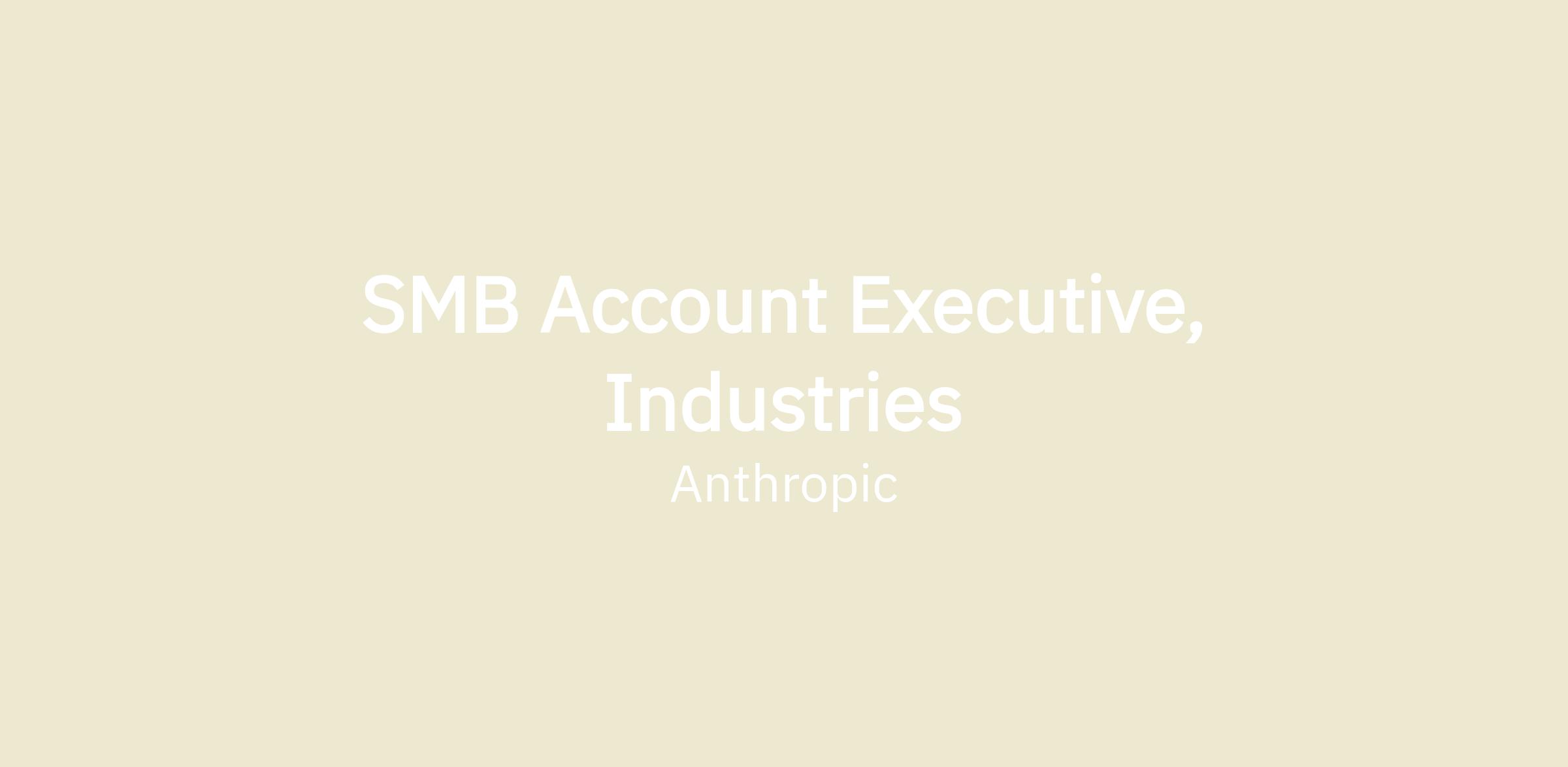 As a SMB Account Executive on Anthropic's Industries team, you'll drive adoption of safe, frontier AI by securing strategic deals with small and medium businesses across key verticals. You'll leverage your consultative sales expertise and technical acumen to propel revenue growth while becoming a trusted partner to customers, helping them embed and deploy AI while uncovering its full range of capabilities.