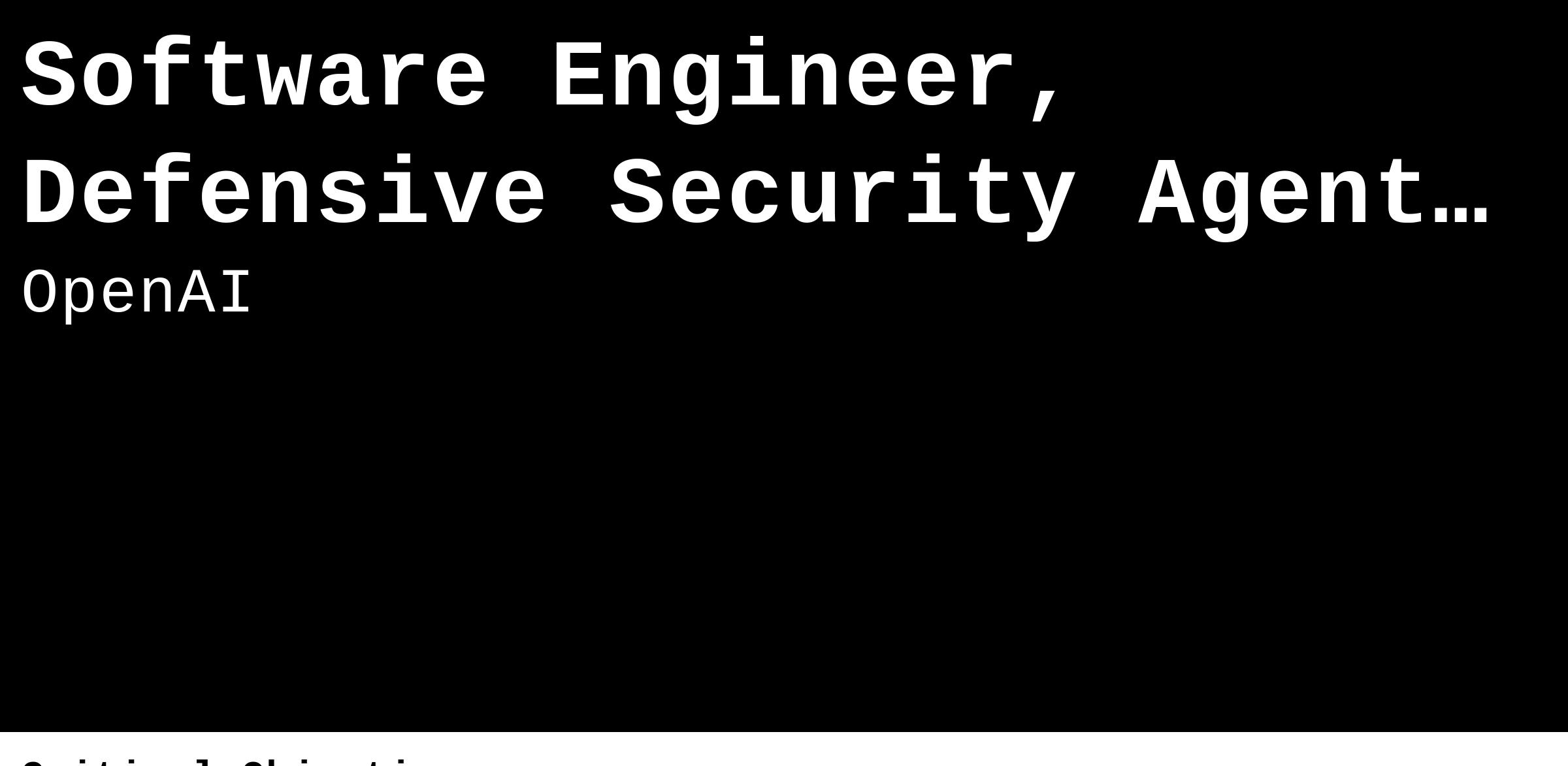 The Defensive Security Agent Engineering team plays a critical role in safeguarding OpenAI’s infrastructure, systems, and operations. Our work is deeply interconnected with OpenAI’s advancements in AI, leveraging state-of-the-art technologies to address security challenges in innovative ways. We are a highly technical and innovative group that works on engineering secure systems, processing large-scale data, and integrating cutting-edge technologies into practical applications. By building and maintaining robust backend systems, we aim to enhance OpenAI’s ability to anticipate, detect, and mitigate security risks in a rapidly evolving landscape.