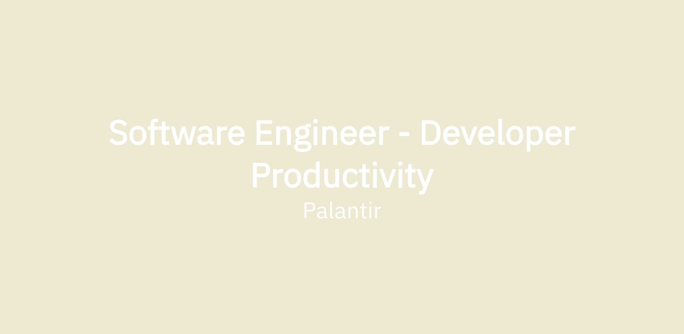 Software Engineers at Palantir build software at scale to transform how organizations globally use data. As a Software Engineer on Developer Productivity, you’ll identify, develop, and drive investments to improve the velocity and quality of our engineering, as well as bolster the happiness and productivity of other developers.