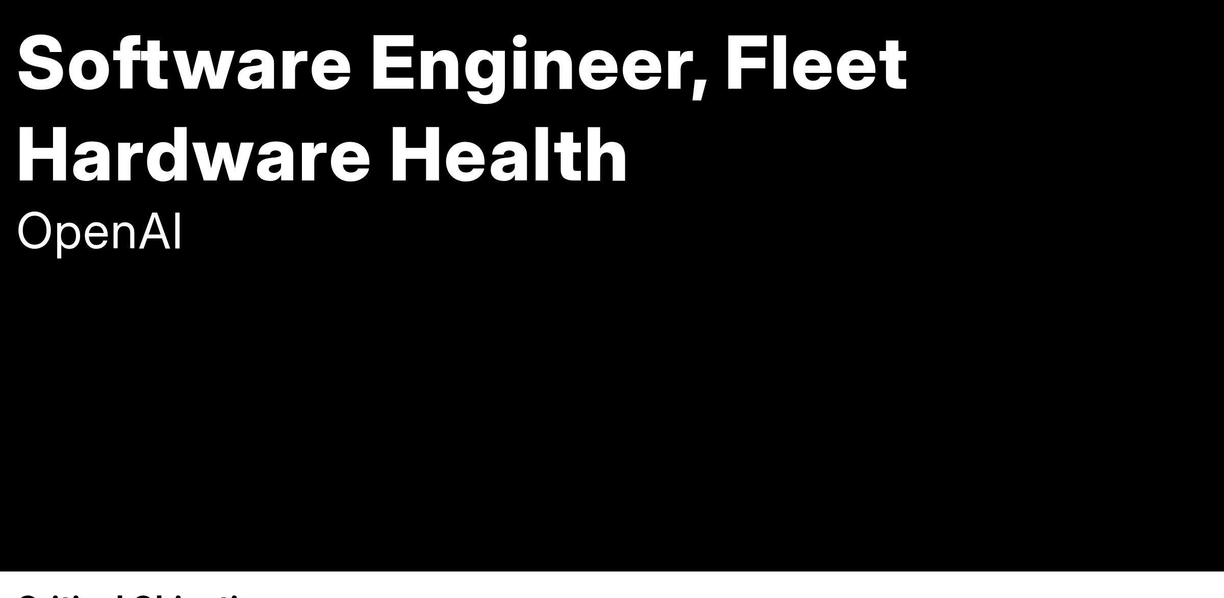 As a software engineer on the Fleet Hardware team, you will be responsible for the reliability and uptime of all of OpenAI’s compute fleet. Minimizing hardware failure is key to research training progress and stable services, as even a single hardware hiccup can cause significant disruptions. With increasingly large supercomputers, the stakes continue to rise.