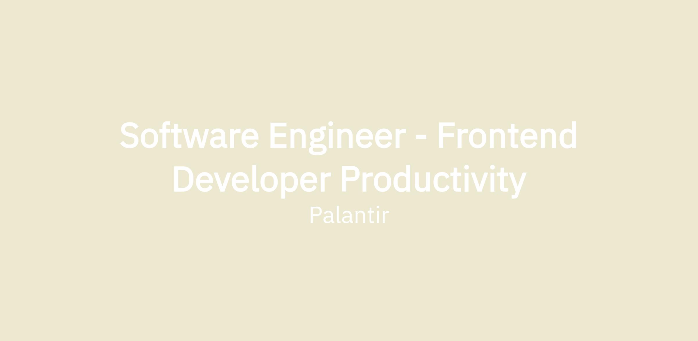Software Engineers at Palantir build software that transforms how the world’s most important organizations use data. As an engineer focused on Frontend Developer Productivity, you’ll work within our Frontend Infrastructure group to identify, develop, and drive investments to improve the velocity and quality of our engineering.