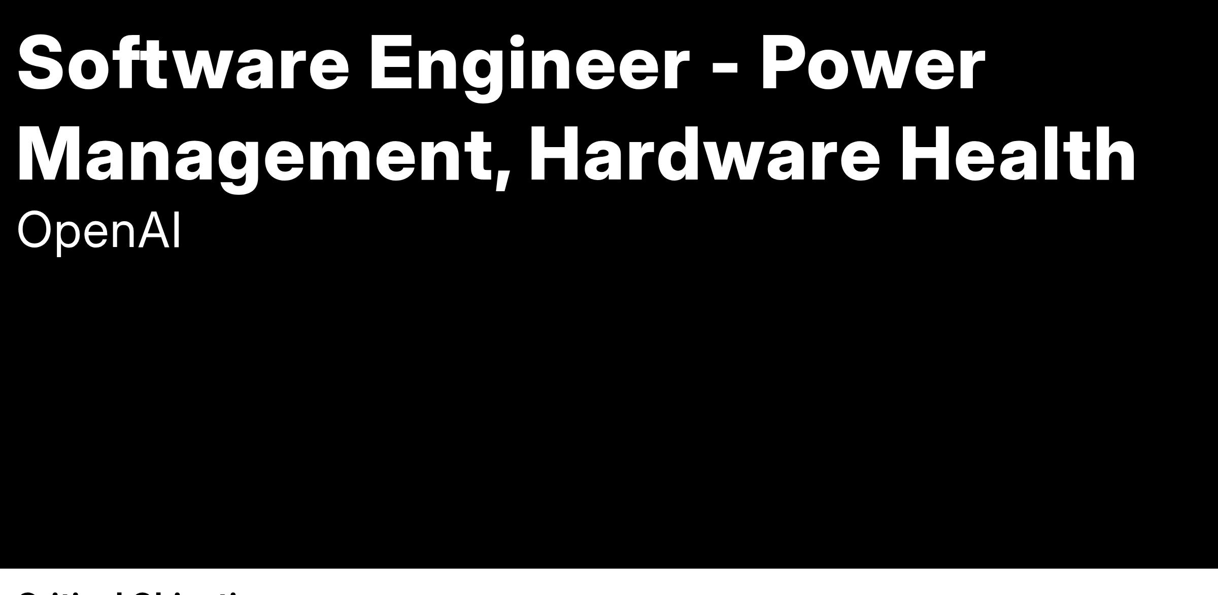 As a Software Engineer on the Hardware Health team focused on power management, you will work on critical infrastructure to support cutting-edge research. With large-scale supercomputers consuming substantial amounts of power, managing this efficiently is key to maximizing computational capacity. This role is critical to ensuring that our cutting-edge research supercomputing infrastructure runs smoothly, while maintaining reliability and grid-level power stability.