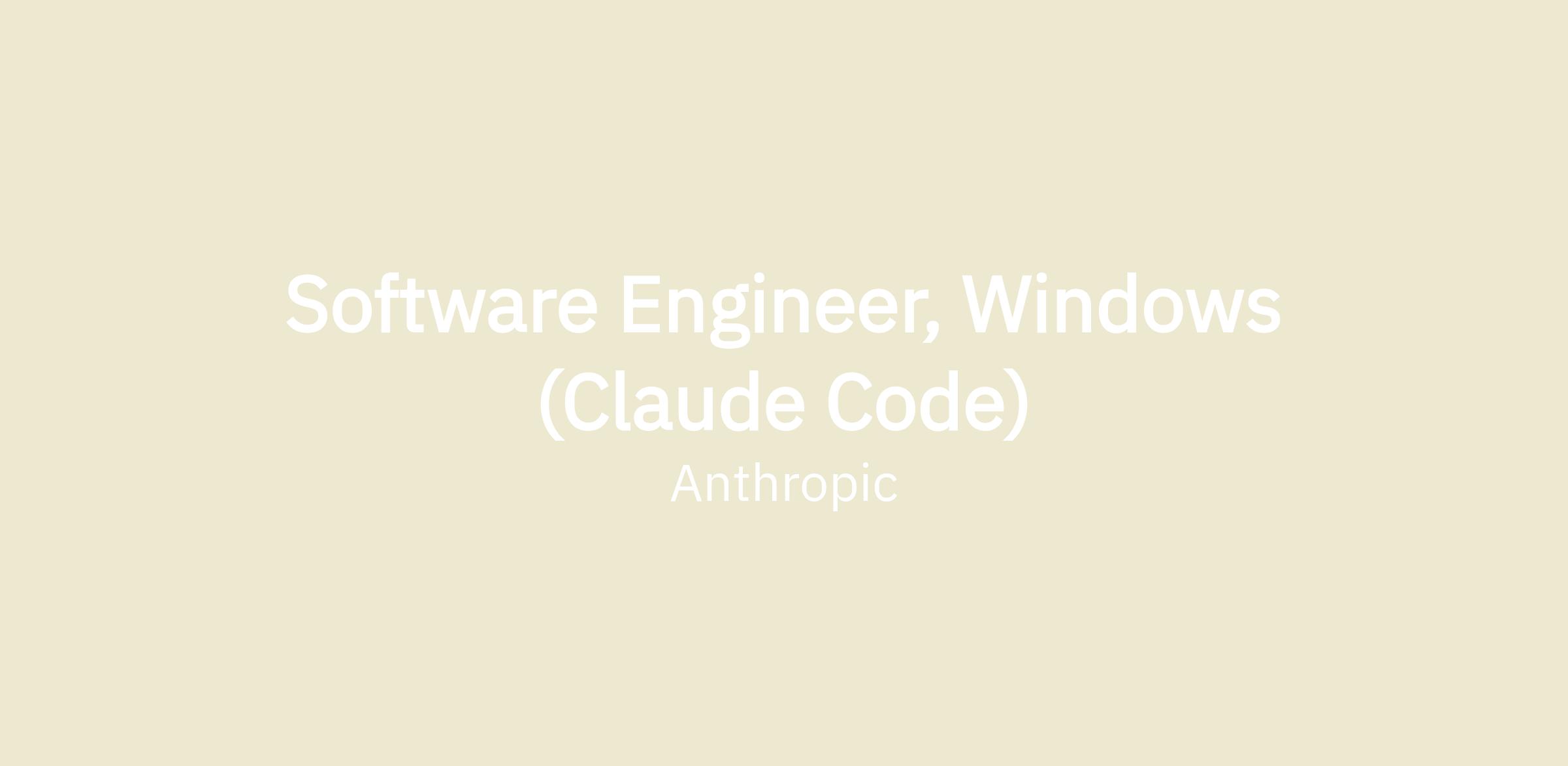 We're specifically looking for a Software Engineer with deep Windows expertise to help us build and maintain Claude Code, our AI-powered coding assistant. The ideal candidate will have a passion for developer tools, strong experience building CLI applications on Windows, and a desire to ensure Windows developers have a first-class experience with our tools.