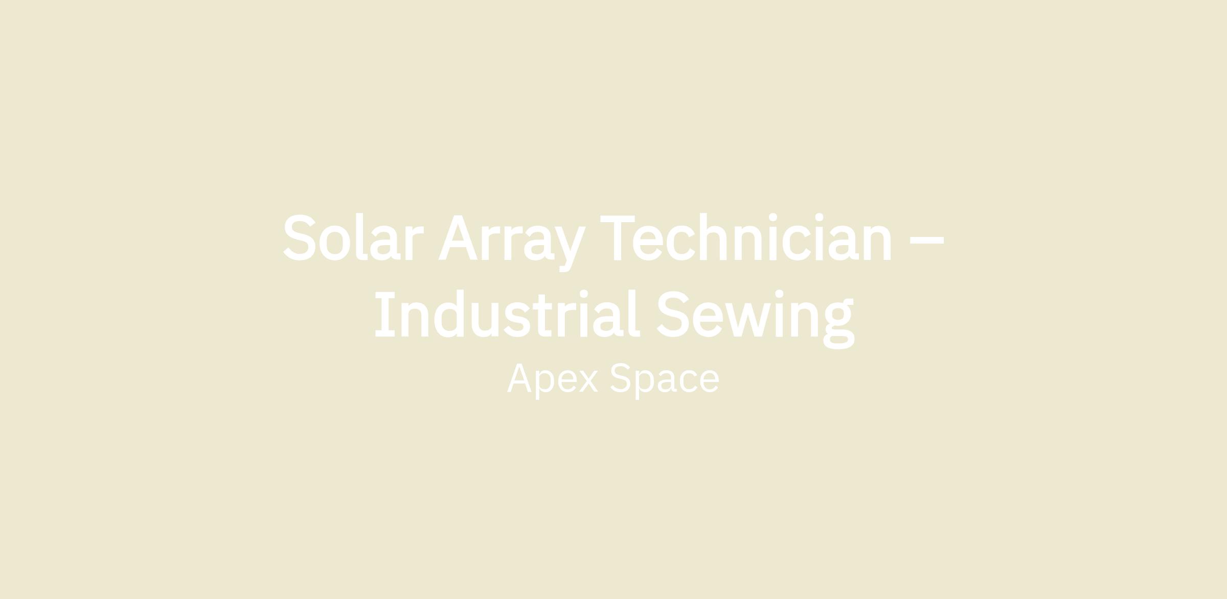 Apex Space is seeking an Industrial Sewing Technician to fabricate and finish solar array blankets and thermal insulation assemblies for our satellite bus production line. Following lamination, solar array blankets require precision sewing and finishing to achieve the dimensional, structural, and cleanliness requirements for spaceflight. Your craftsmanship directly contributes to the thermal and mechanical protection of our spacecraft.