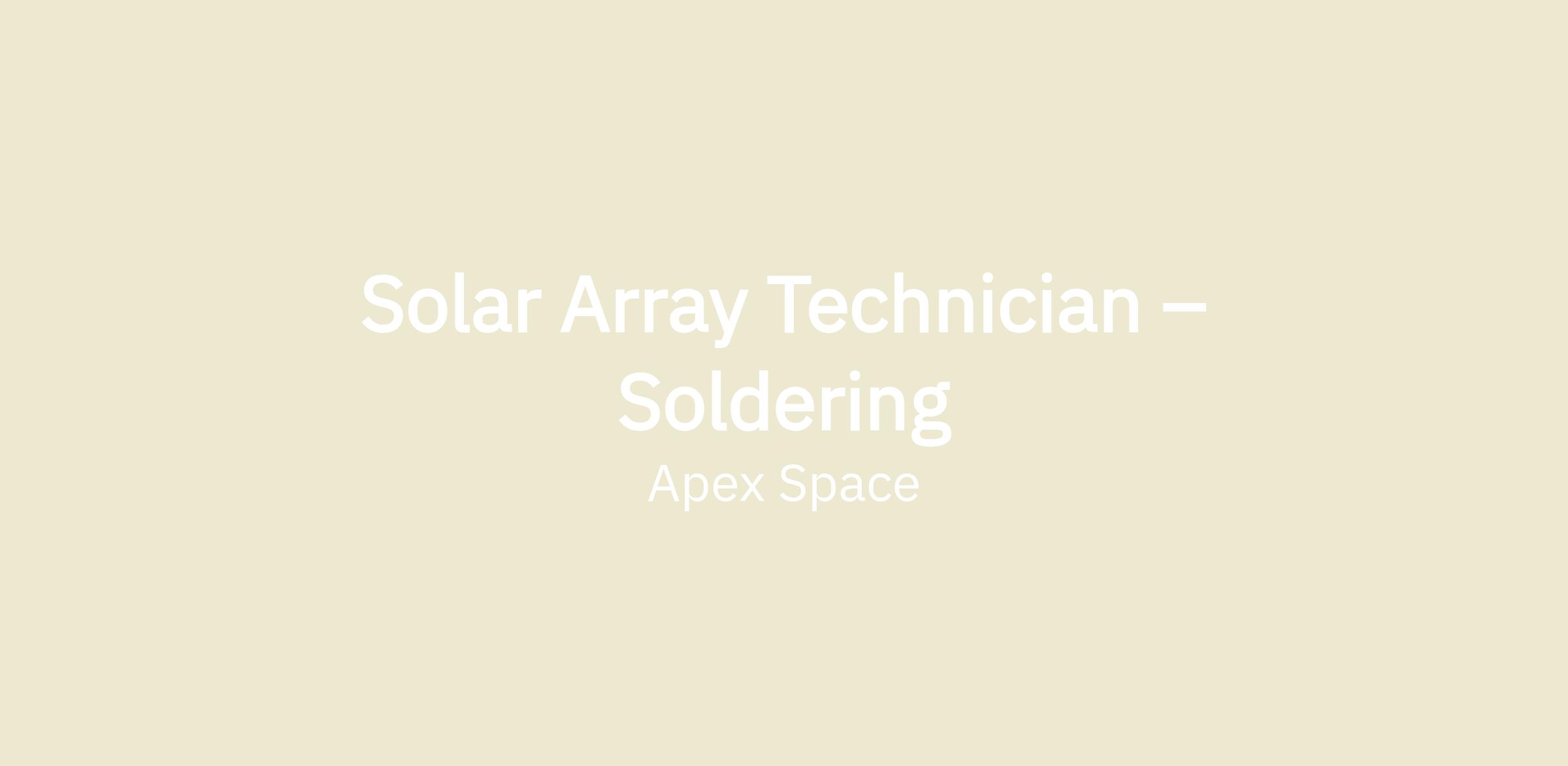 Apex Space is seeking a Soldering Technician to perform precision soldering operations on solar array assemblies, including cell stringing, ribbon soldering, and interconnect work. You will be a critical contributor to our solar array production line, where workmanship quality directly affects spacecraft power generation performance.