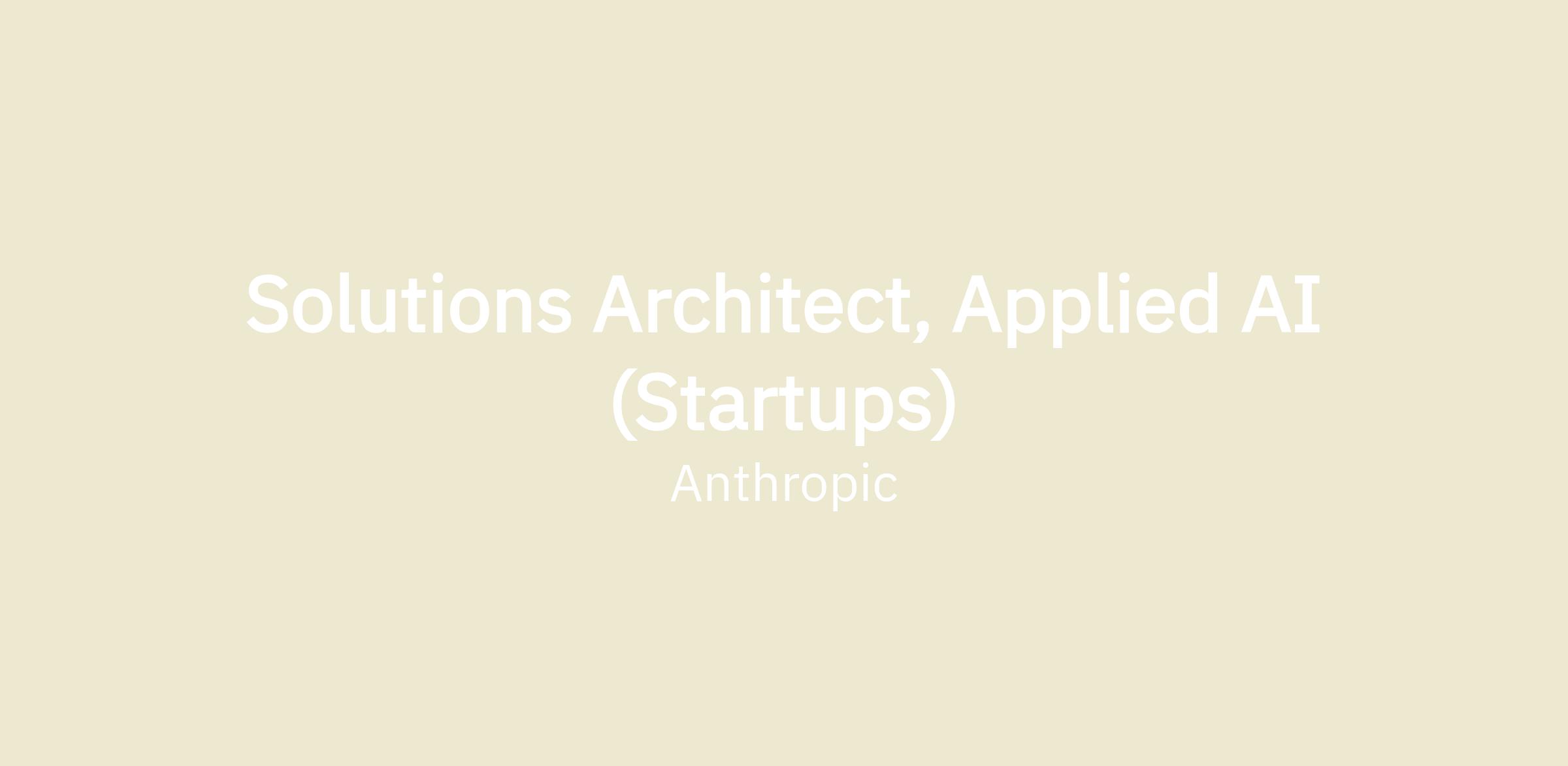 As a Solutions Architect on the Startups Applied AI team at Anthropic, you will win the trust of founders and engineers by being an exceptional technical partner, helping startups successfully build on the Claude Developer Platform as they grow from early product to scale. You'll combine deep technical expertise with a builder-first mindset to help startups architect innovative LLM solutions, win technical evaluations, and get the most out of Claude.