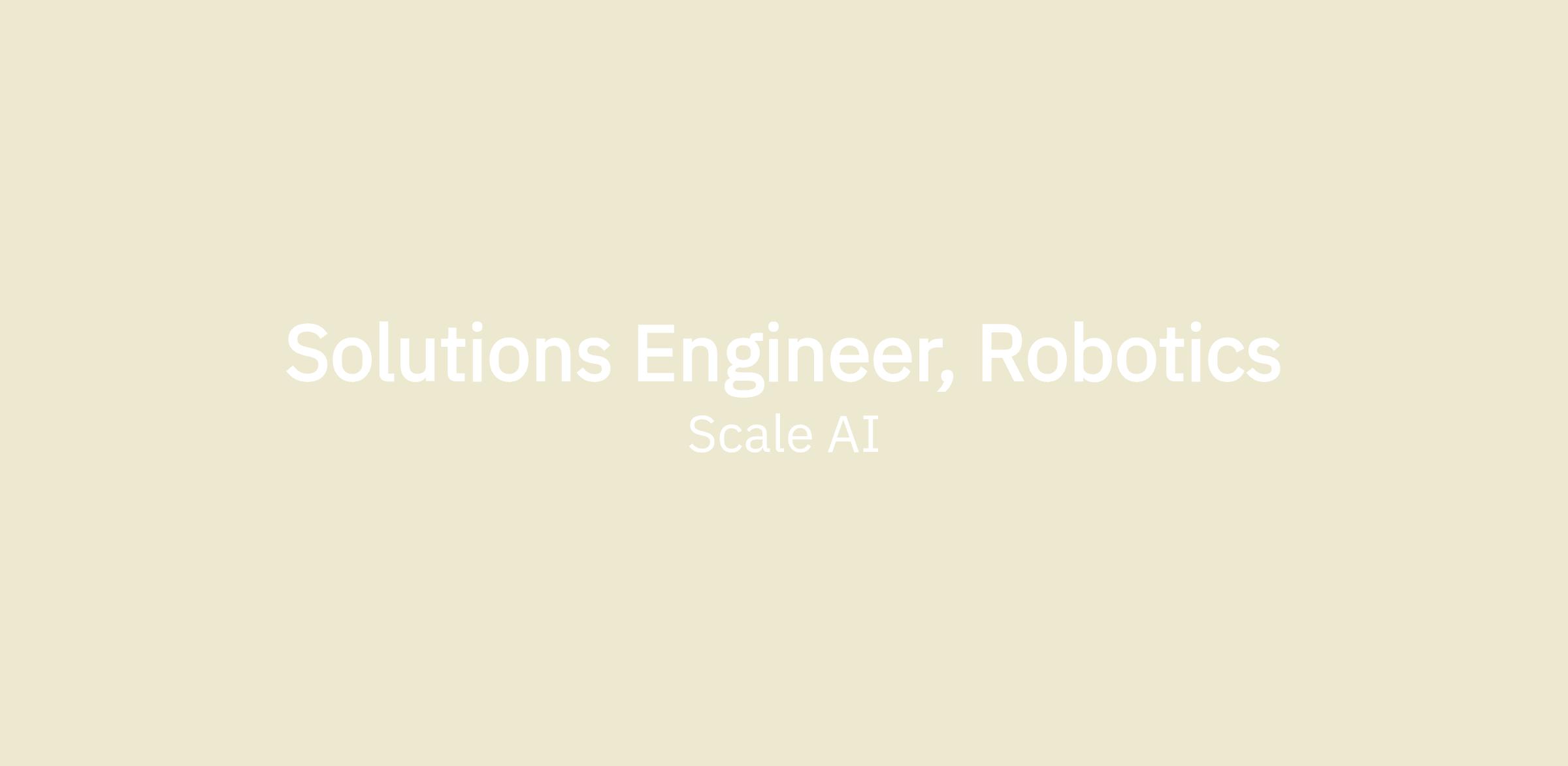 The next frontier for AI is the physical world. At Scale, we're pioneering this shift, moving artificial intelligence from digital spaces into robotics and autonomous systems. Our Robotics team is building the data platform that will power the future of Physical AI. We are looking for a pivotal Solutions Engineer to join this team.