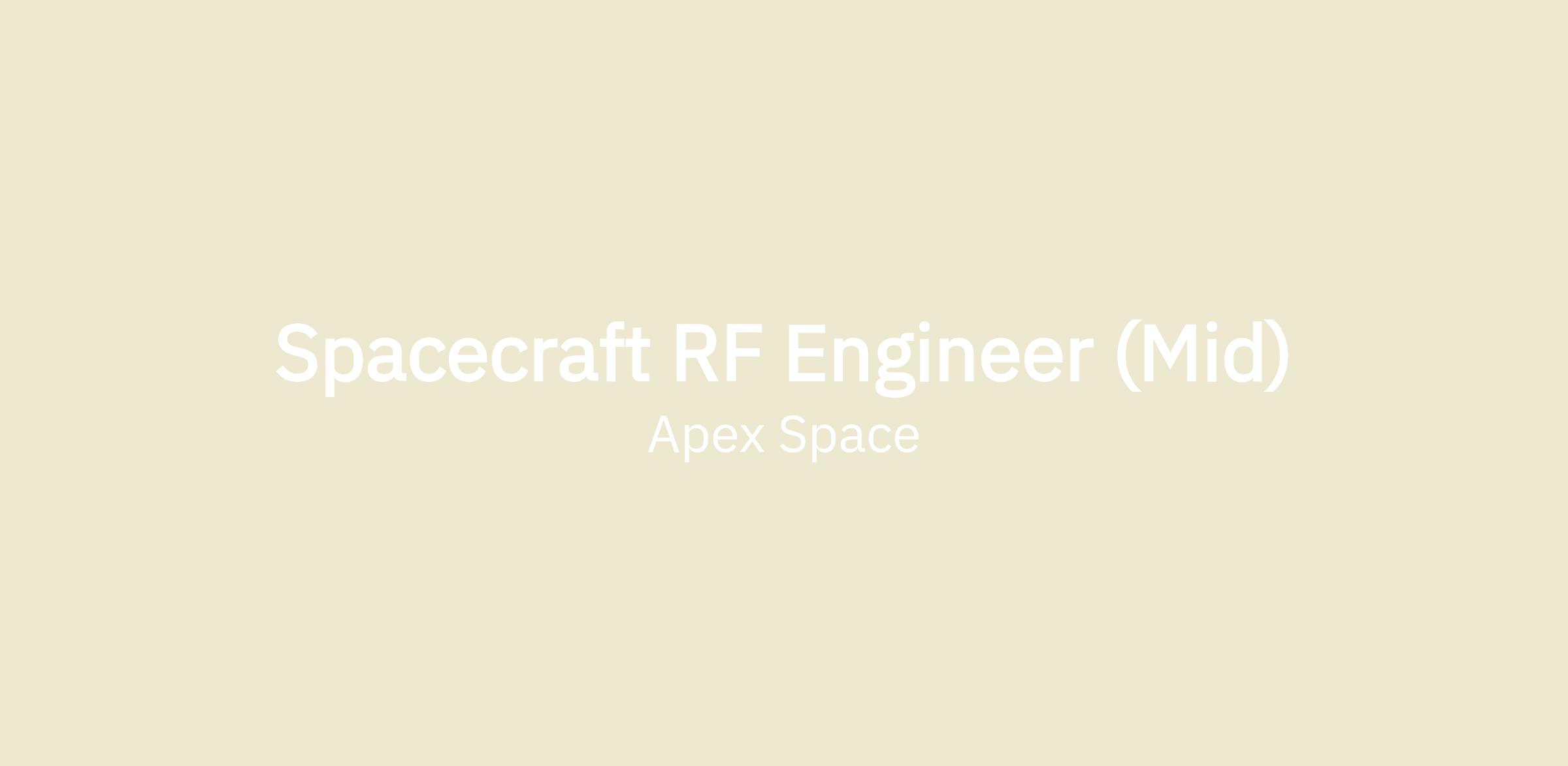 Apex is seeking a talented spacecraft RF Engineer to work on a closely integrated team who will drive the design of hardware and software to meet the communications requirements of our bus. You will have an opportunity to approach this from a clean sheet design and inform coupled trades across the vehicle architecture. You will be innovative in your approach to push the limits of design and performance, while disrupting and making an impact on the industry.