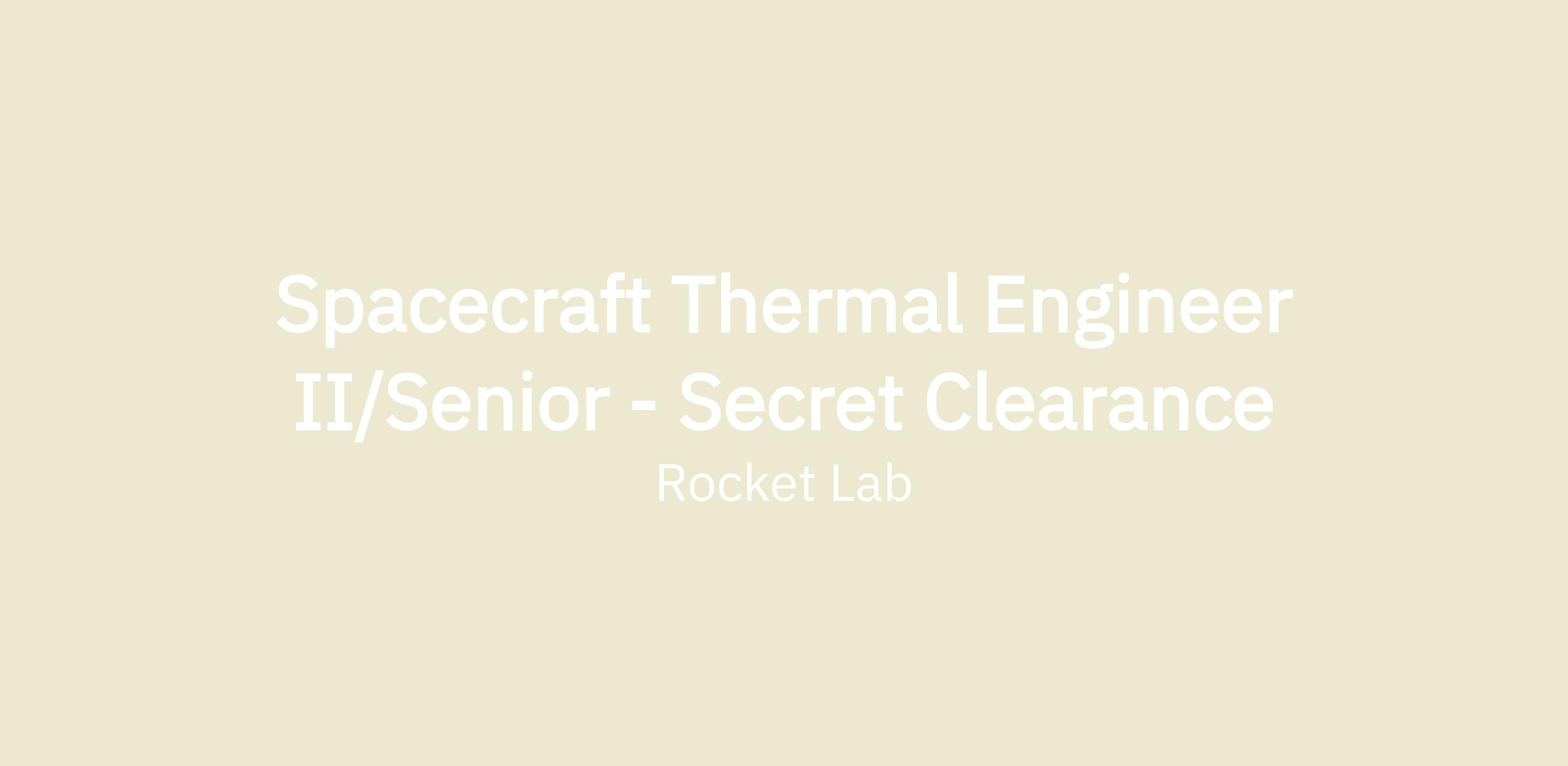 SPACECRAFT THERMAL ENGINEER II/SENIOR – SECRET CLEARANCE