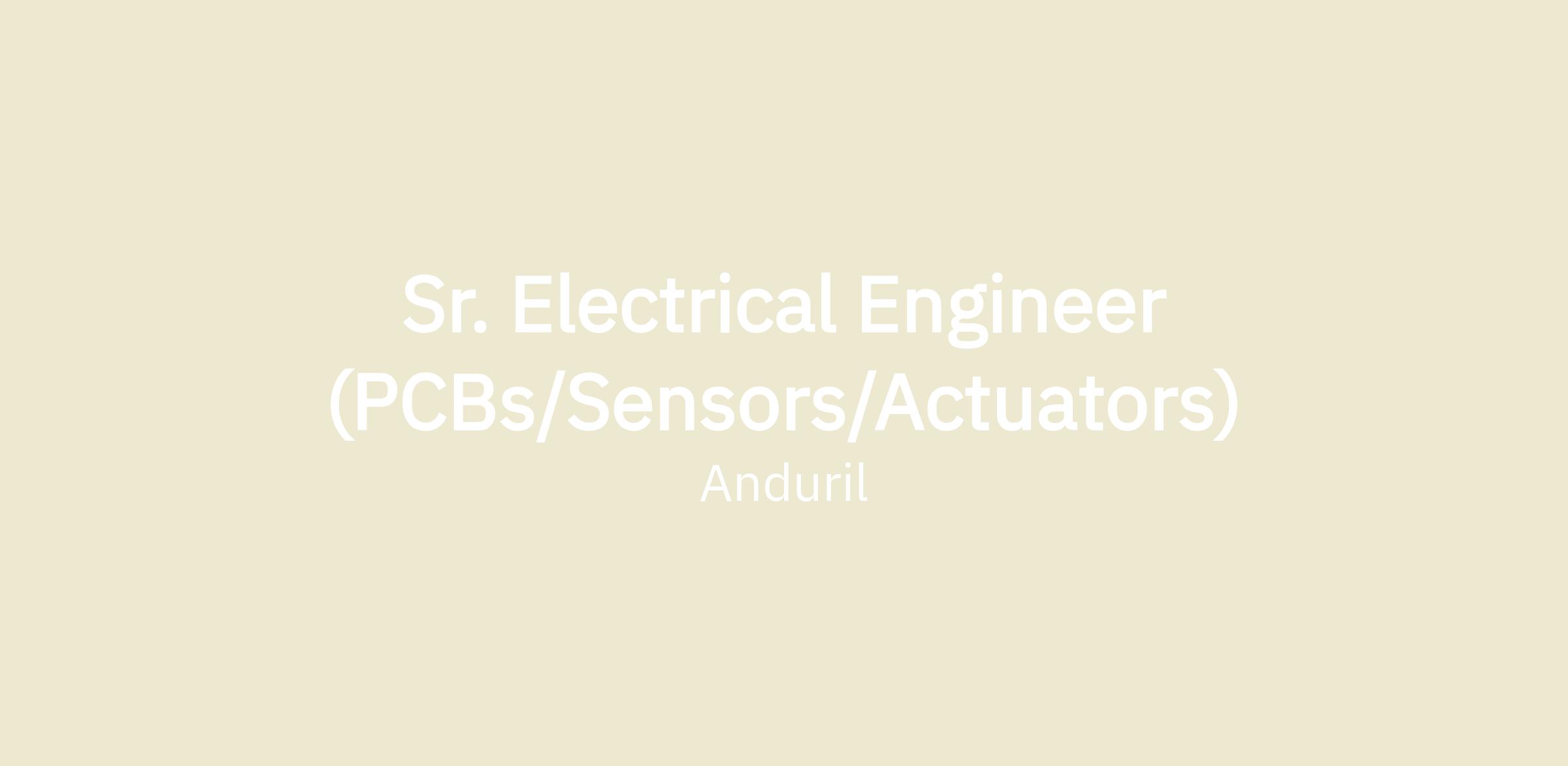 Anduril is seeking a Electrical Engineer to join the team at our Costa Mesa HQ. Here you will work on core product development for complex systems, including but not limited to optical systems, batteries, mechanisms, control systems, and sensors. The role requires high ownership and frequent collaboration with other core disciplines. The ideal candidate would be practical, hands-on and a self starter. High growth potential is possible as well as additional leadership opportunities.