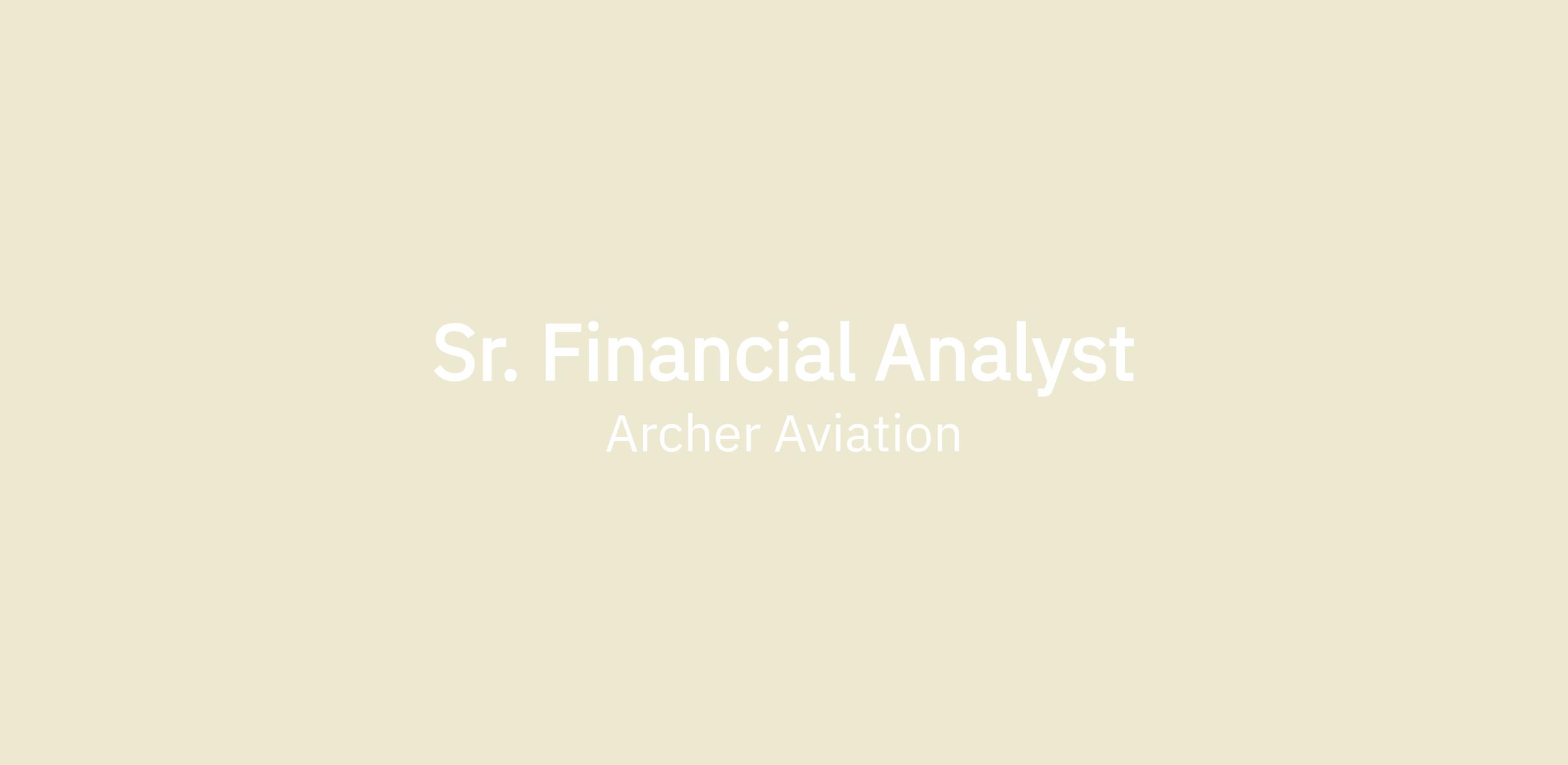 Archer Aviation does not engage with external recruiting agencies/individual recruiters with whom it does not have a prior written agreement. Archer reserves the right to make use of any unsolicited resumes that it receives and bears no responsibility for payment of any fees asserted from the use of unsolicited resumes. If you are a recruiting agency or individual recruiter wishing to do business with Archer, please reach out to People@archer.com. All employment processes are managed by the Archer People Team.