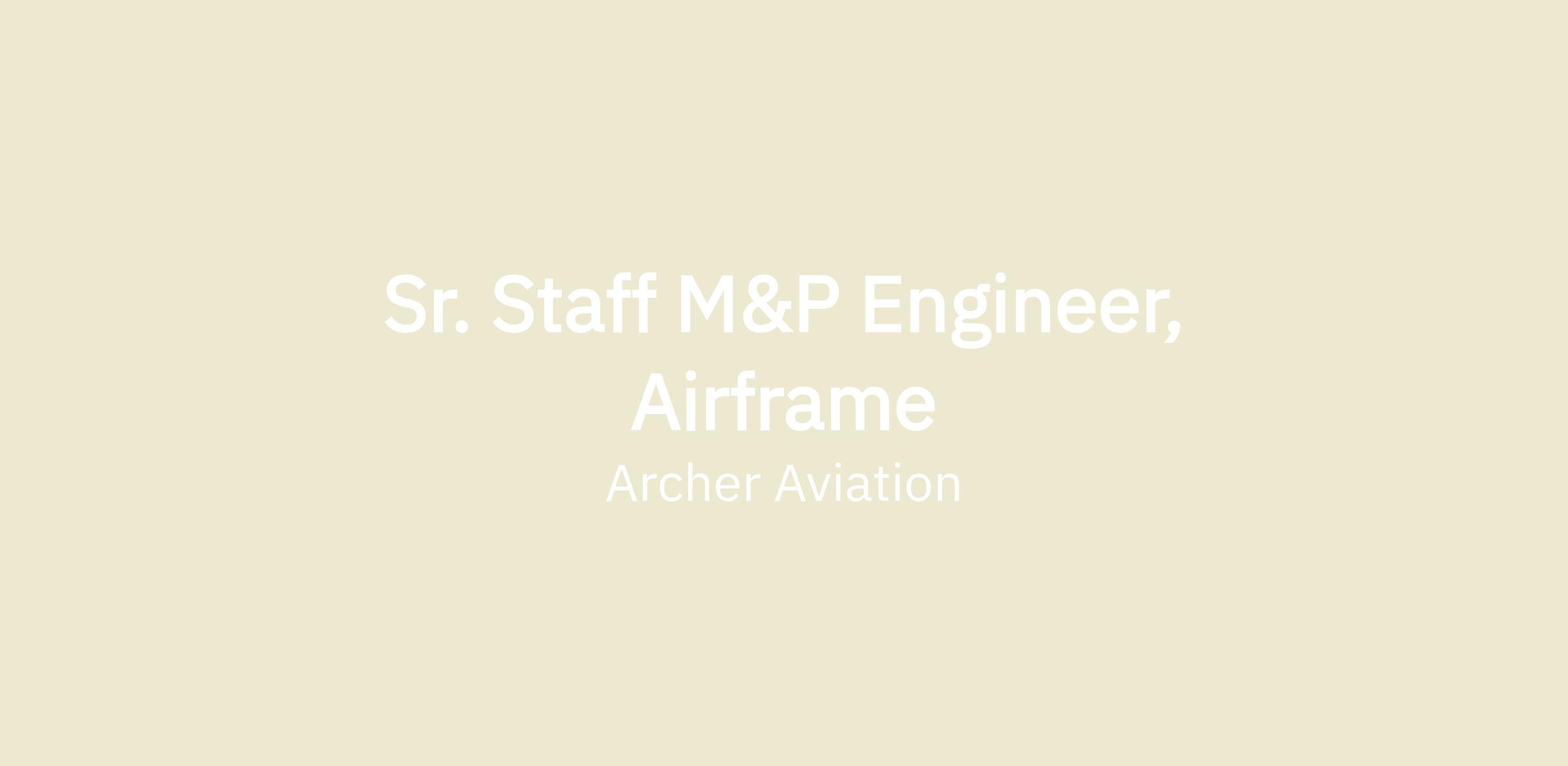 Archer Aviation does not engage with external recruiting agencies/individual recruiters with whom it does not have a prior written agreement. Archer reserves the right to make use of any unsolicited resumes that it receives and bears no responsibility for payment of any fees asserted from the use of unsolicited resumes. If you are a recruiting agency or individual recruiter wishing to do business with Archer, please reach out to People@archer.com. All employment processes are managed by the Archer People Team.