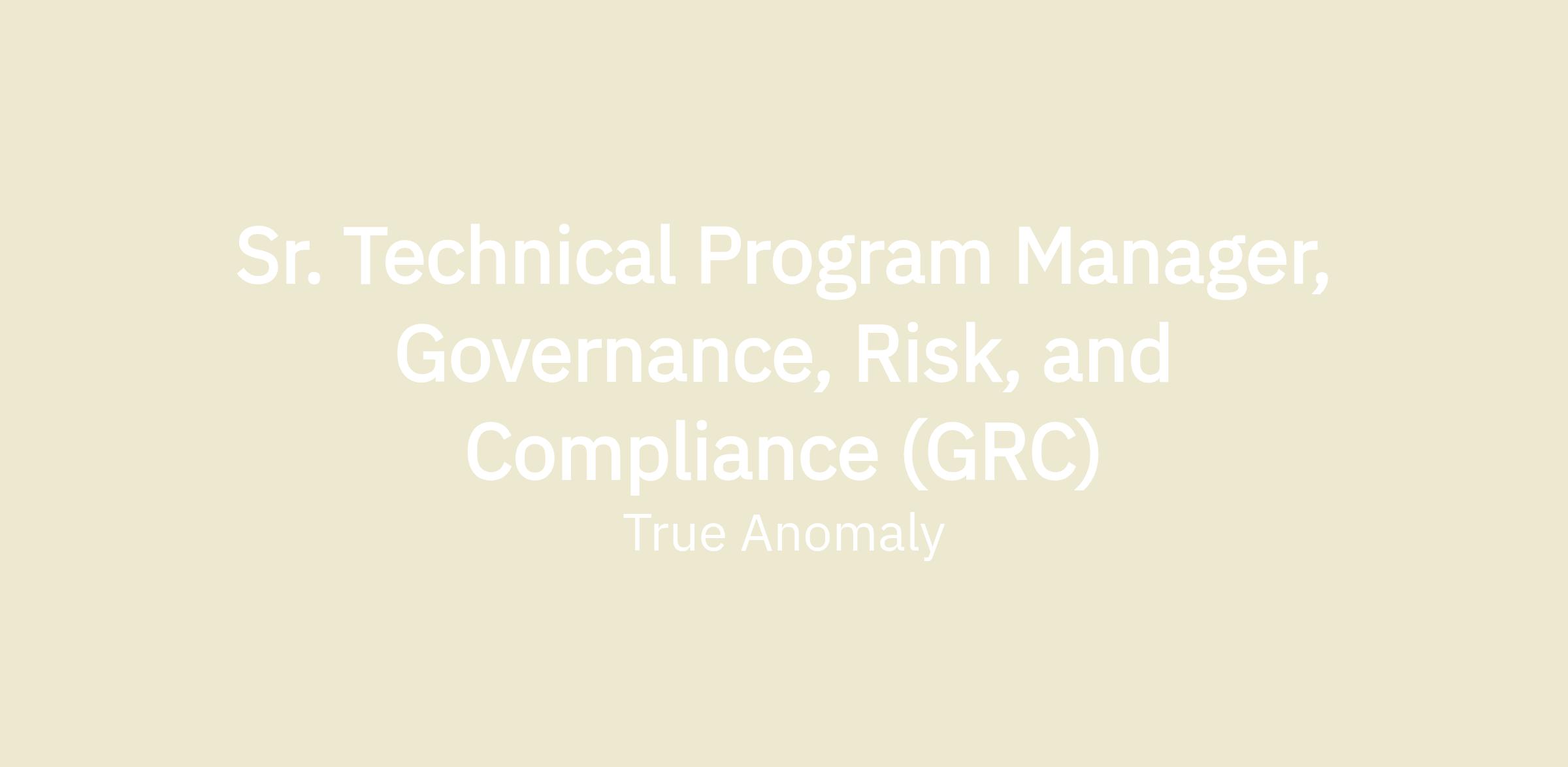 We are seeking an experienced Sr. Technical Program Manager (TPM) of Governance, Risk, and Compliance (GRC) to join our GRC team at True Anomaly. The Sr. TPM will be a crucial asset in ensuring the security and compliance of our products. The ideal candidate should possess a minimum of 7 years of experience implementing RMF (DoD IL5 and IL6), and CMMC. Additionally, the Sr. TPM must have experience with coordinating internal/external assessments, policy development, and cloud security best practices.