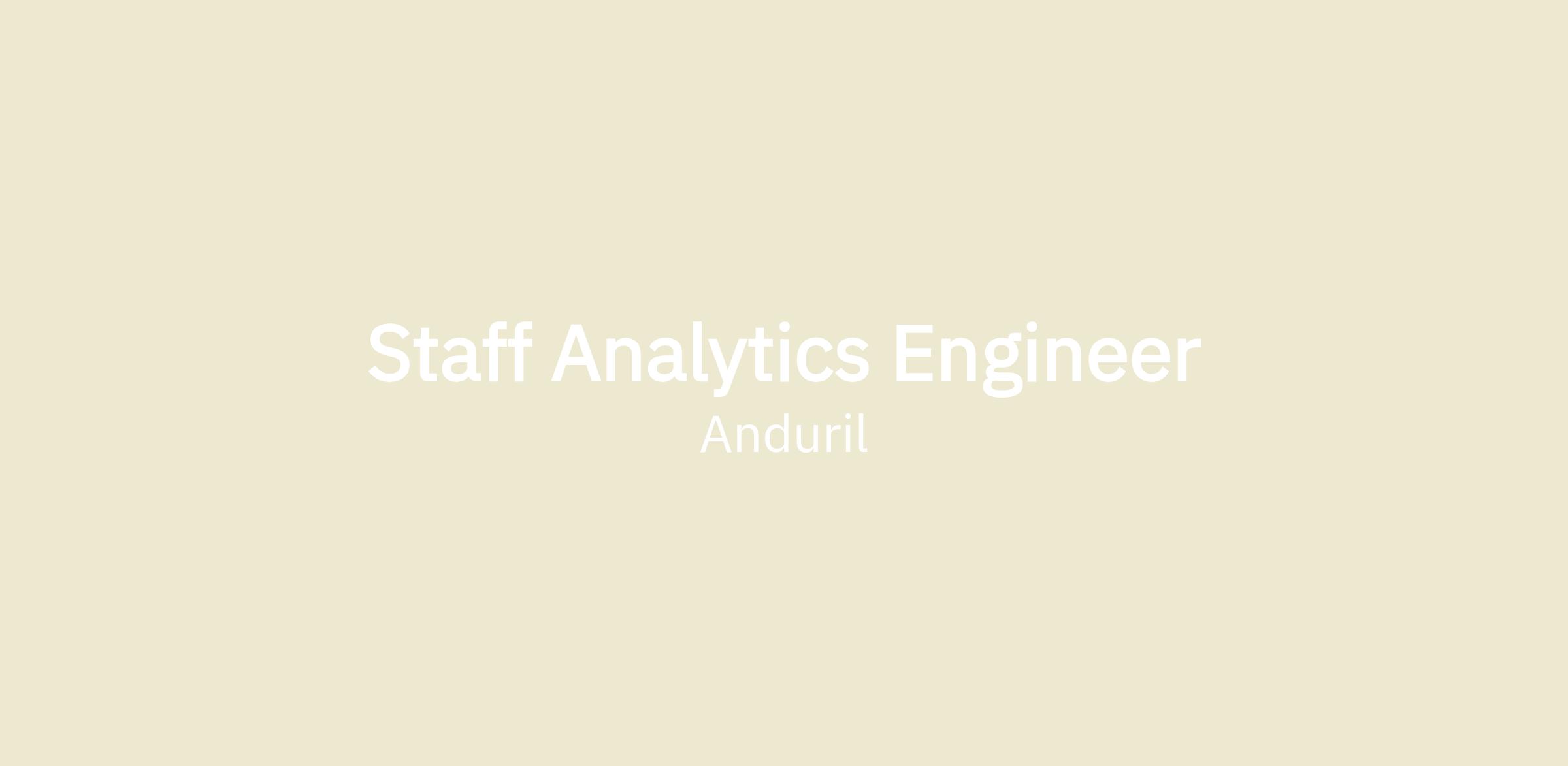 The Analytics team is responsible for modeling our internal data into reusable entities that generalize how Anduril operates. From those entities we build workflows, dashboards, and metrics that drive better and faster decision-making. You will work with stakeholders from across the company to understand how Anduril functions and model our data to create the digital twin of our operations. The Analytics space is engrained in our team’s DNA, as we regularly discuss shifts in the industry and keep up with the top relevant blogs. If this culture and Anduril’s mission speaks to you, you’ve found the right place.