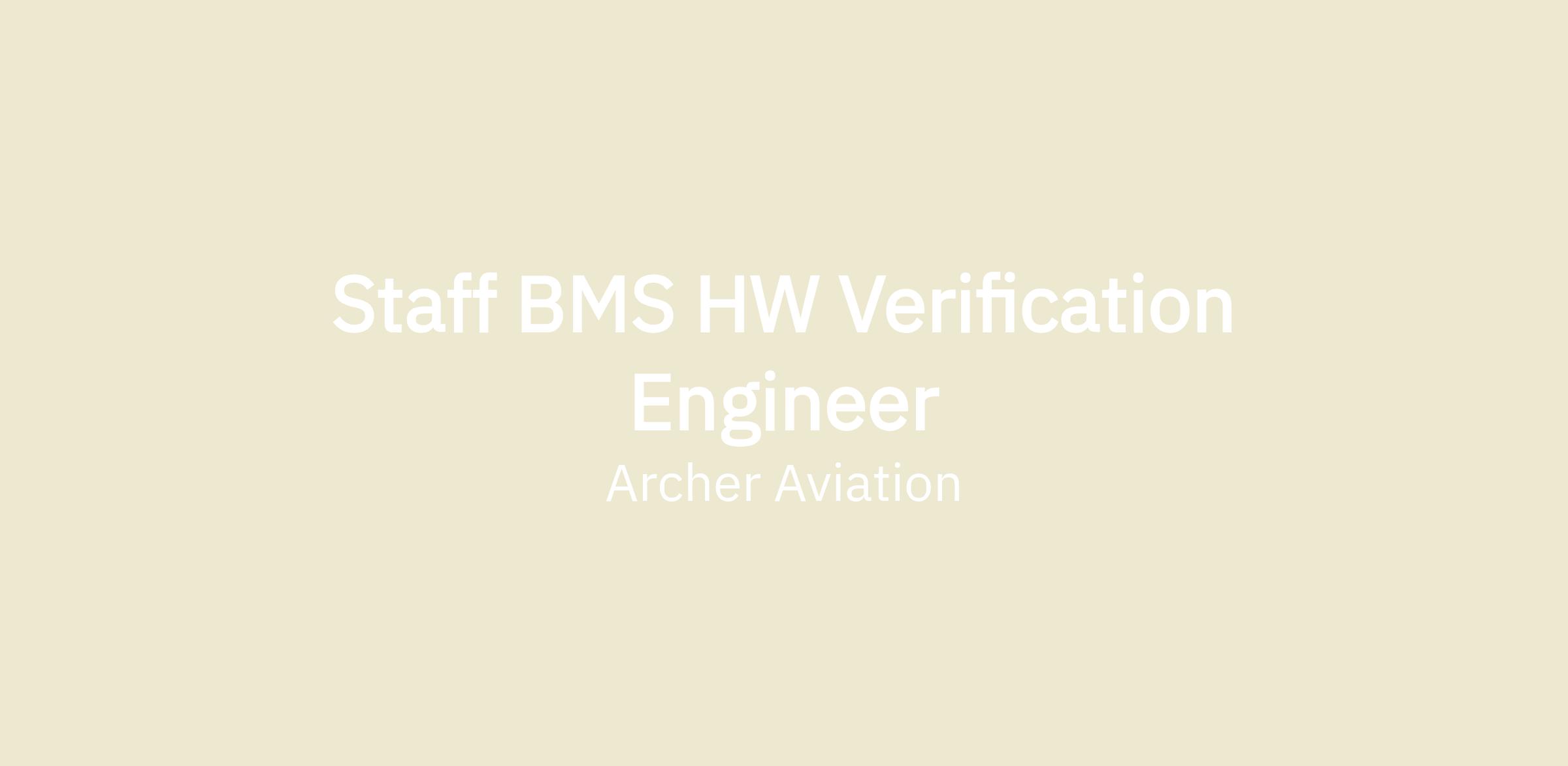 In the Staff BMS HW Verification Engineer role, you will lead the end-to-end verification and validation of Archer’s high-voltage Battery Management System (BMS) electronics — ensuring that the hardware, sensing, and control circuitry meet the stringent safety, reliability, and certification standards required for electric vertical takeoff and landing (eVTOL) aircraft. You will develop and execute hardware verification plans, design and automate test setups, perform environmental and functional qualification, and generate the certification evidence needed to demonstrate compliance with FAA and industry standards such as DO-160G, DO-254, and ARP4754A. Your work will directly enable the certification and safe operation of Archer’s battery systems powering the next generation of sustainable urban air mobility.