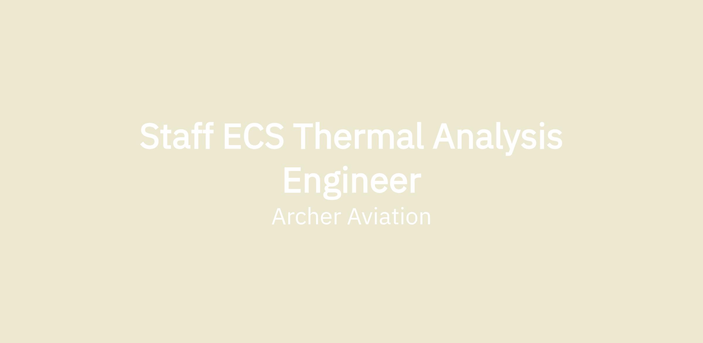We are seeking a Staff ECS Thermal and Flow Analysis Engineer to join our Thermal Management team. This hands-on role will primarily focus on the design, analysis, and optimization of the Environmental Control System (ECS) and the overall fuselage ensuring cabin comfort, avionics cooling, and safe operation across all flight conditions. You will work closely with the ECS team, system architects, and test engineers to develop system-level and component-level flow and thermal models that inform design decisions and support verification, validation, and certification activities.