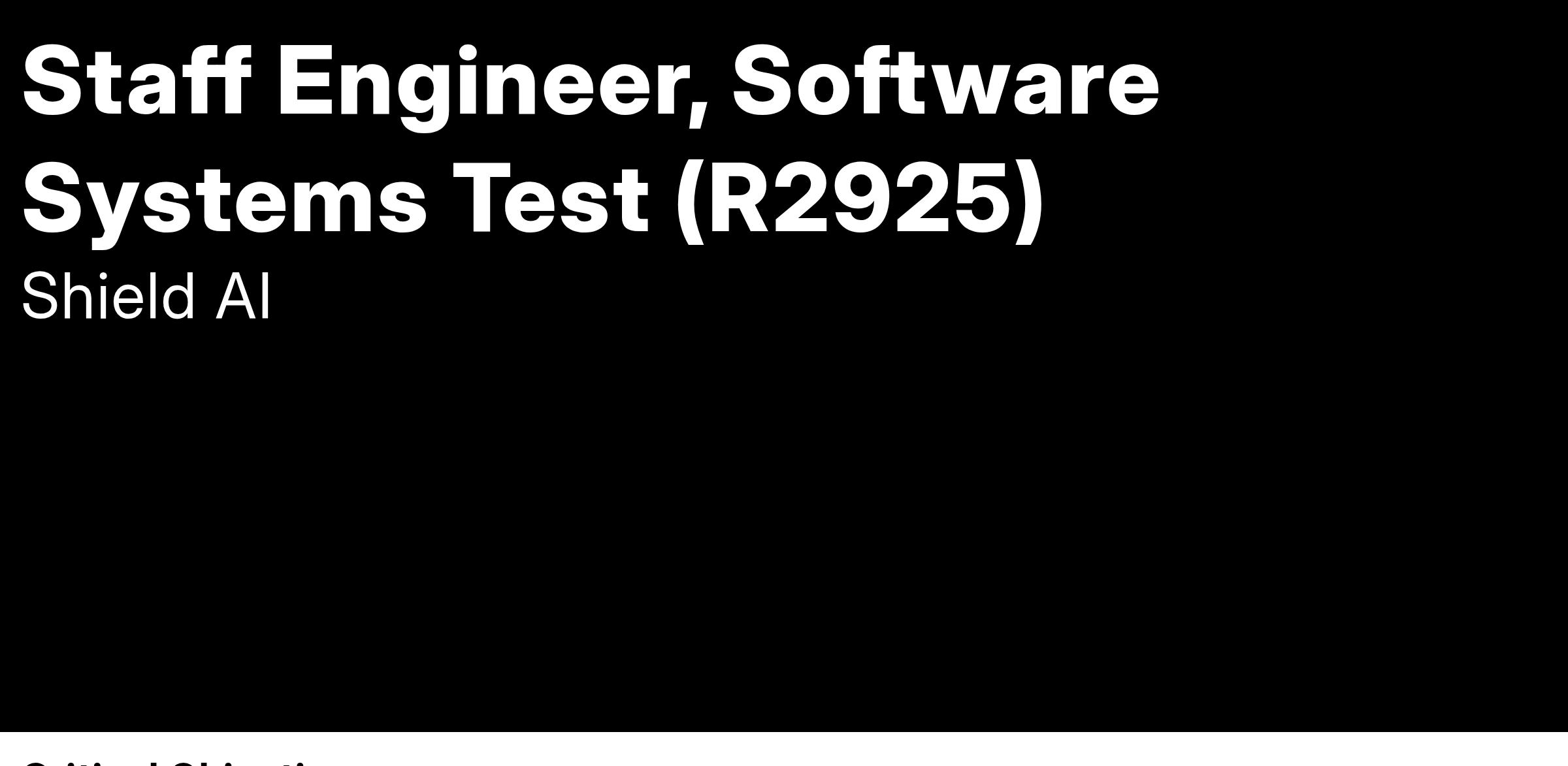 The Aircraft Software Test & Automation team is an ambitious, driven group of engineers focused on testing complex aircraft software integrated onto vehicles and various hardware systems. The team is a cross-discipline group of test engineers, software developers, embedded engineers, and more; working closely with our Embedded, GNC (Guidance, Navigation & Controls), and System Test teams, the Software Test & Automation team is chartered to provide (1) rigorous, but fast testing and (2) an advanced & robust test infrastructure for all aircraft software. Shield AI is building groundbreaking autonomous aircraft technologies, this team provides the complex testing & innovative capabilities required to get us there.