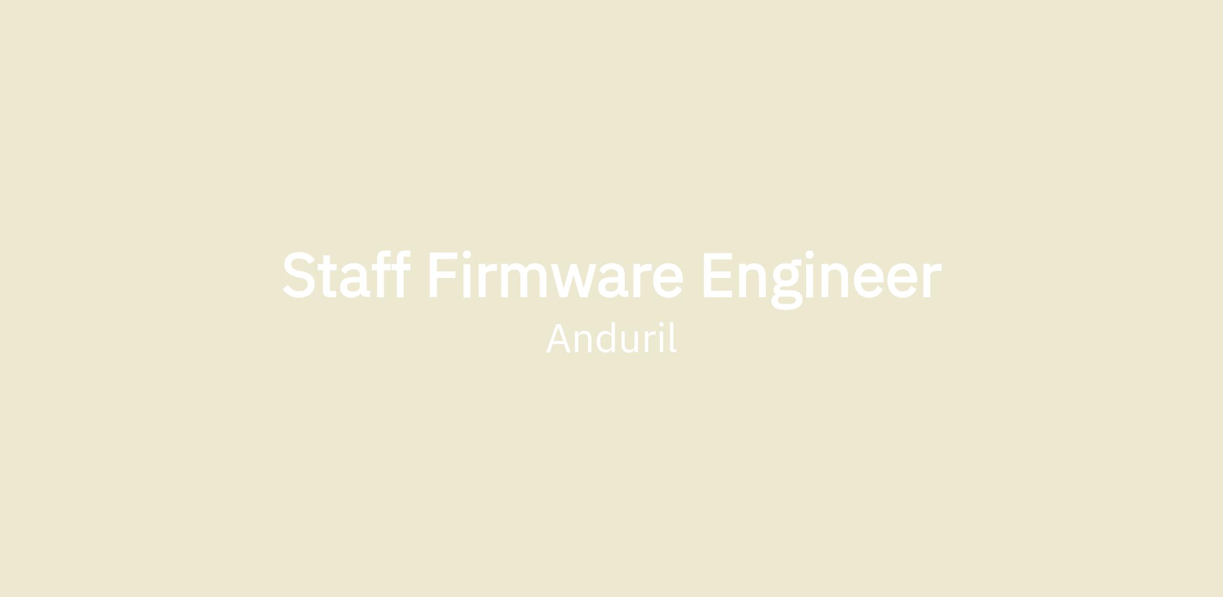 Anduril is seeking a Staff Firmware Engineer to join our team based in Costa Mesa, CA. The firmware team at Anduril develops core technology used across multiple products such as as Menace, Dive-XL, Ghost, and Roadrunner. We work in close coordination with Electrical Engineering to develop hardware and software solutions to some of the hardest problems facing our customers. You'll contribute low level firmware development for systems operating on land, sea, and air.