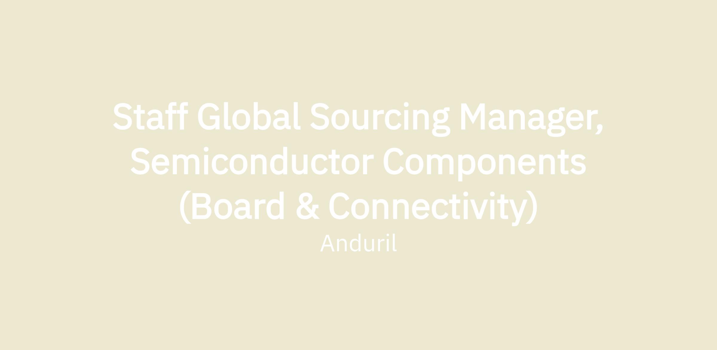 The Staff Global Sourcing Manager, Semiconductor Tactical (Board & Connectivity) is the domain expert for the semiconductor component commodities for Anduril Industries. This is a proactive, high-impact role in securing critical components, materials, and services that power our products. This role will be responsible for developing new supplier and new sourcing partnerships that can be incorporated into new products, as well as existing products to improve their technologies, cost, and quality. There is broad internal cross functional partnership to evaluate supplier opportunities, while ensuring commercial agreements, intellectual property, and statement of works are accurate and well established prior to pipelining.