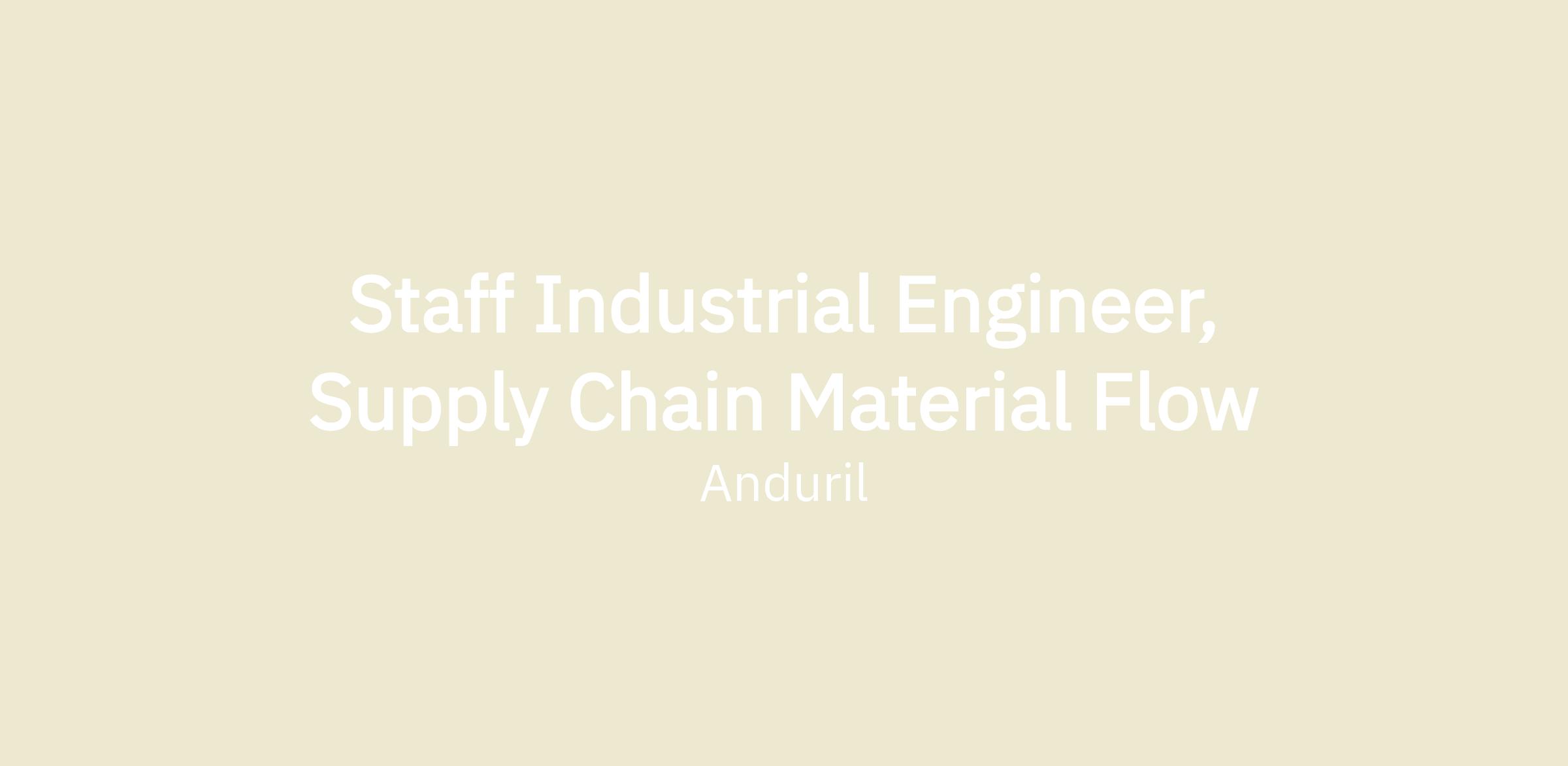 Anduril’s Supply Chain team is seeking a Staff Industrial Engineer to join us. Working with a global network of suppliers, to support a global manufacturing platform takes people who are willing to work hard and find ways to win. As an Staff Industrial Engineer, you will have the responsibility to optimize Anduril’s supply chain's warehousing and material flow operations for best-in-class quality, reliability, speed, and asset utilization, all while meeting critical customer deployment and internal development timelines. Executing on this responsibility will entail active collaboration with other Anduril teams, including but not limited to Supply Chain, Engineering, Quality, and Business Operations.