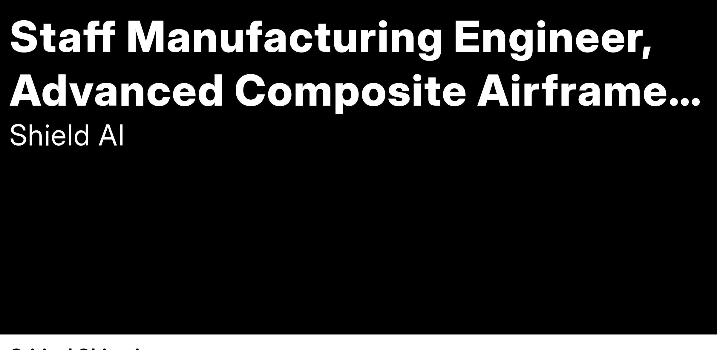 - 7+ years of experience in composite airframe manufacturing, assembly, or tooling design.