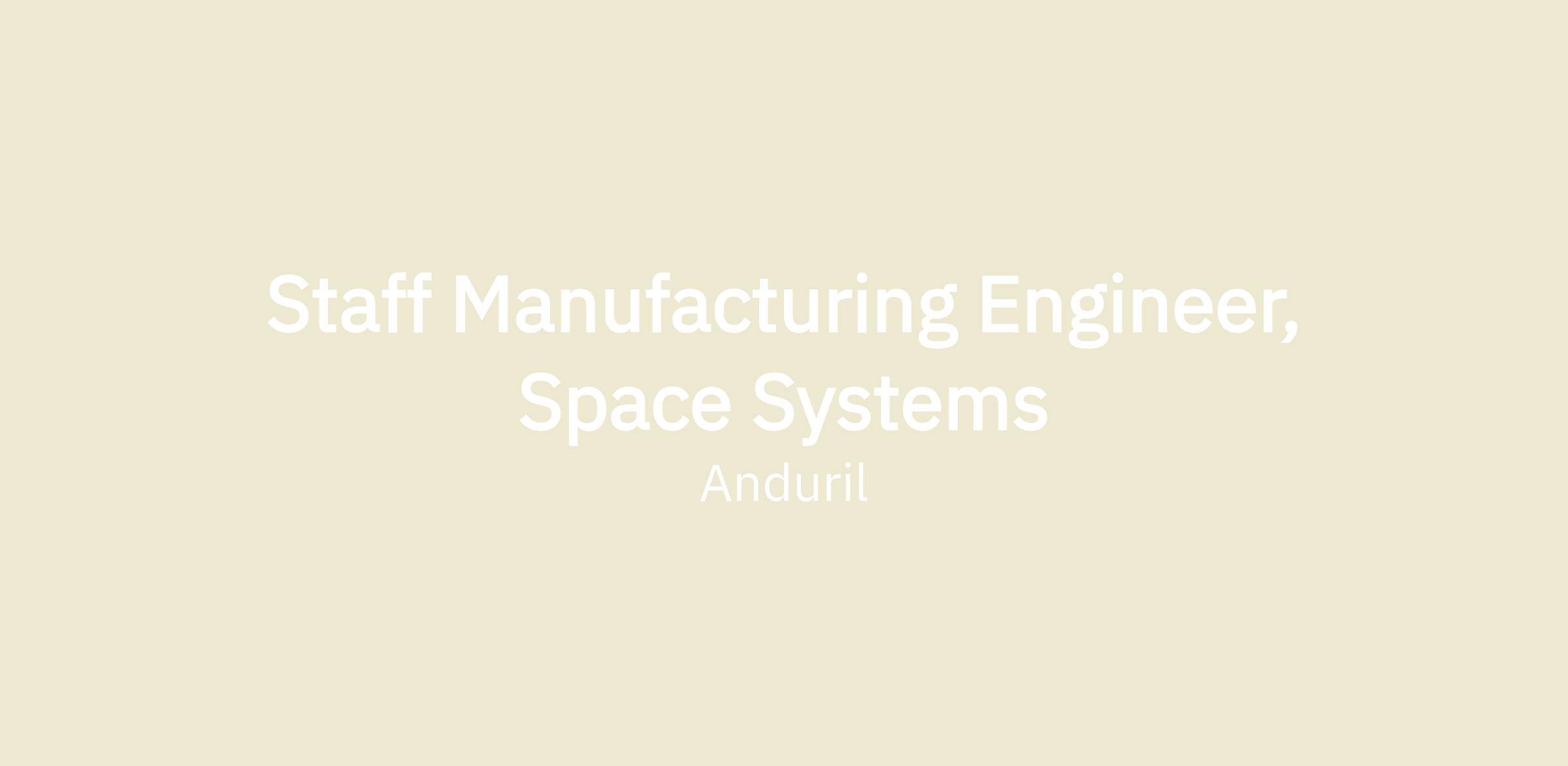 Anduril’s Space Manufacturing team is seeking a Staff Manufacturing Engineer to join our team. The Space Manufacturing team is responsible for assembly, integration, and test of ground support equipment, PCBA, unit-level, and integrated systems that are vital for our aerospace and defense operations. Your expertise will help ensure that our products meet the highest standards of quality and reliability at Anduril.