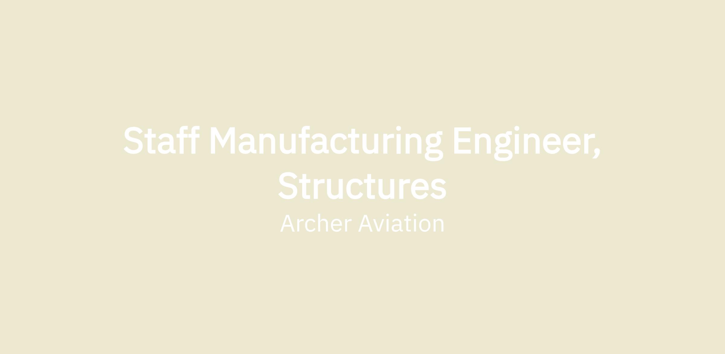 In this role, you will drive the manufacturing strategy for aircraft structures and serve as a technical leader responsible for defining and scaling Archer's aircraft design and production, supporting aircraft builds from prototype through early production ramp.