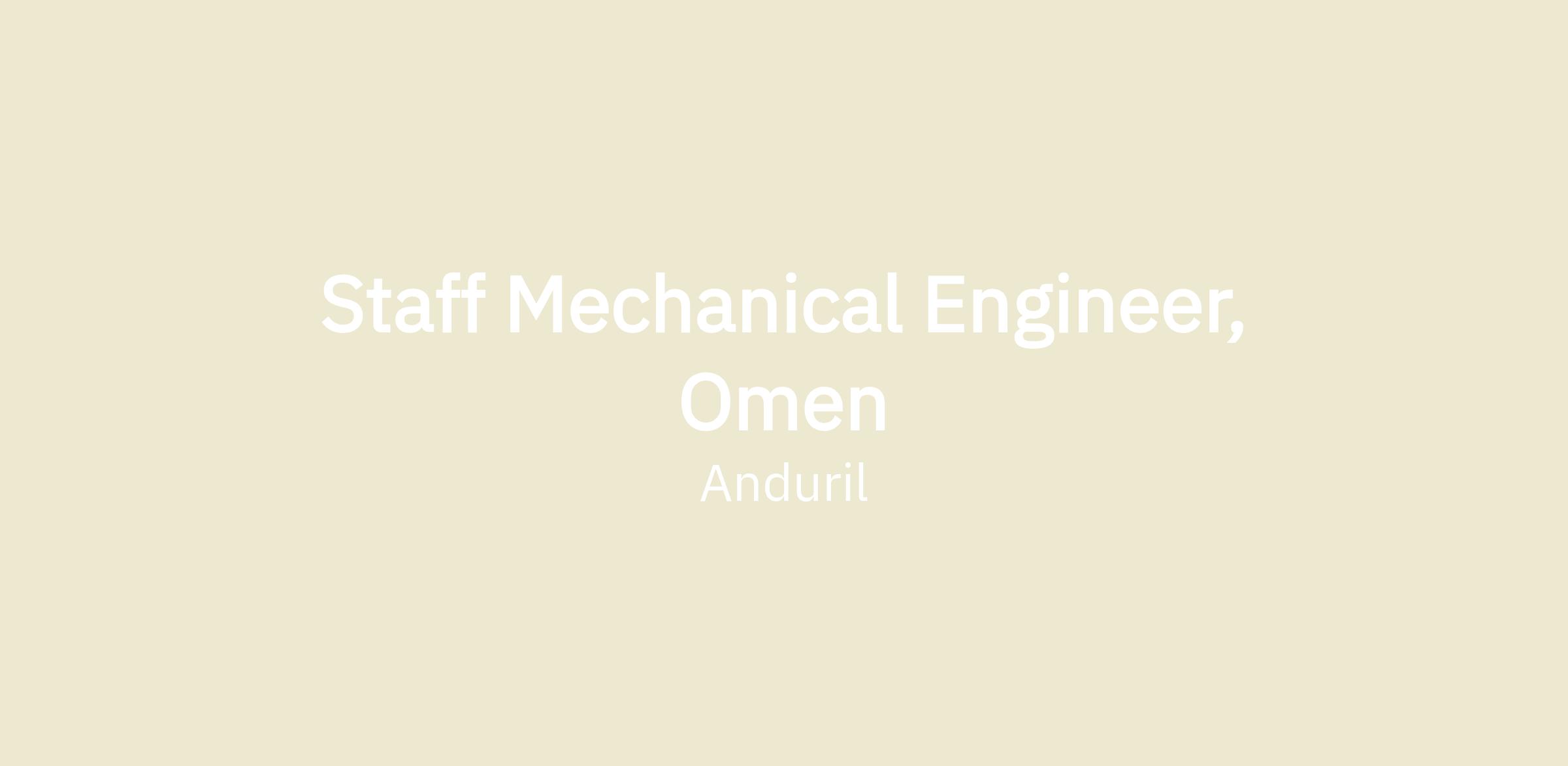 Anduril is seeking a Staff Mechanical Engineer to join the Omen Team at our Costa Mesa HQ. Omen is Anduril’s hover-to-cruise autonomous air vehicle (AAV) that packs the endurance, payload, and mission flexibility of much larger airplanes into a novel runway-independent Group 3 platform. Omen can operate from ship decks, beaches, or remote island clearings, providing true runway independence and freedom of maneuver across defense and civilian domains. Omen is the first tail-sitter aircraft with a mass-production contract, with an order of 50 systems representing a decisive investment that anchors production and accelerates the development of future systems.