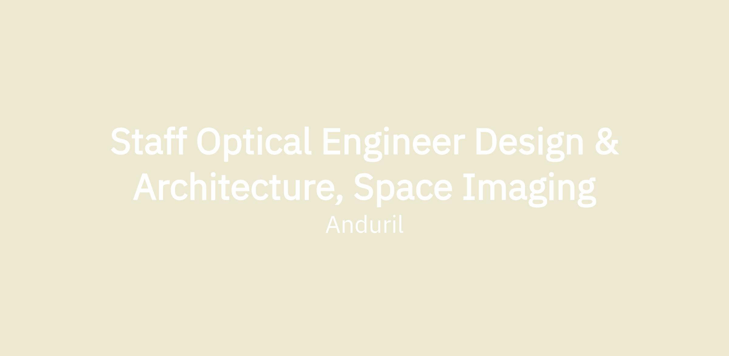 The Space Imaging team is seeking a Senior Optical Engineer to design a new product lines for spaceborne systems. In this role, you will work closely with an interdisciplinary technical team to define optical architectures, complete the optical design and analysis, build prototypes leading to ground and flight testing, and mature the prototypes into products.