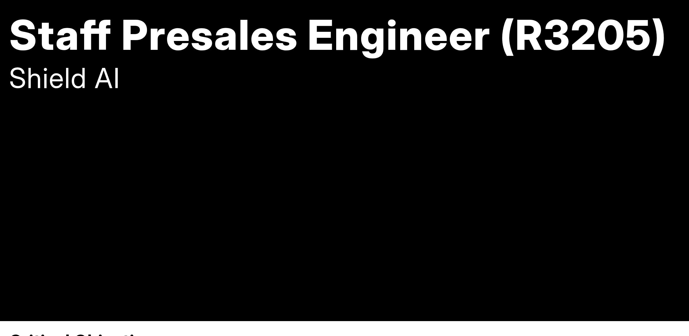 The Presales Solutions Engineer will provide technical expertise and support to customers prior to the sale and during the use of Shield AI enterprise software products. This role involves collaborating closely with customers to understand their requirements and demonstrating how our solutions can meet their needs. You will play a key role in ensuring successful product integration for AI and Autonomy development throughout the presales process.