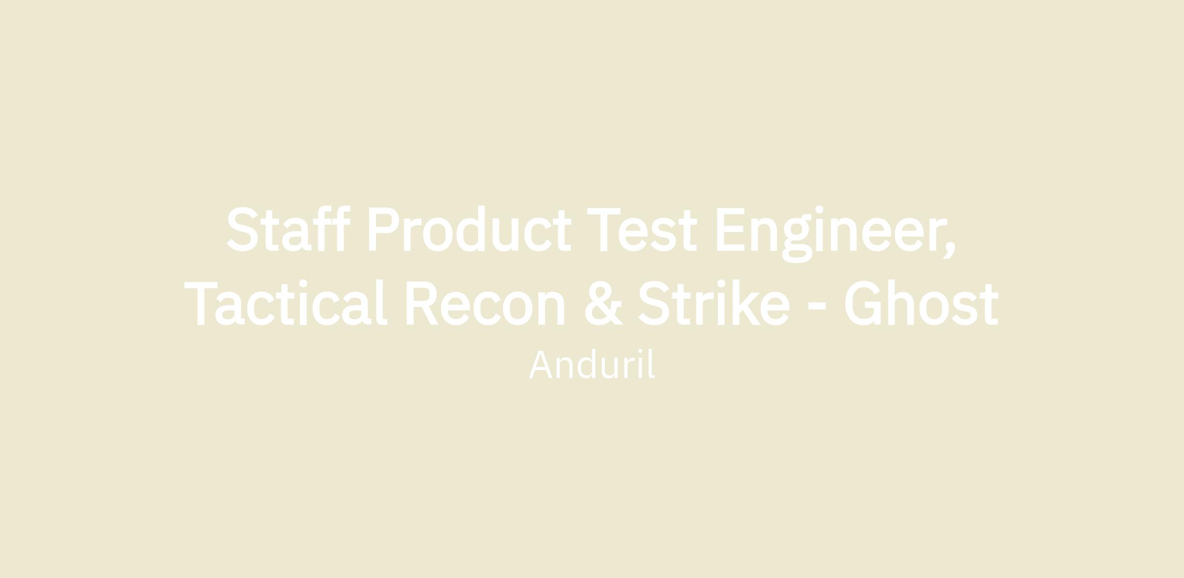 Staff Product Test Engineer, Tactical Recon & Strike - Ghost