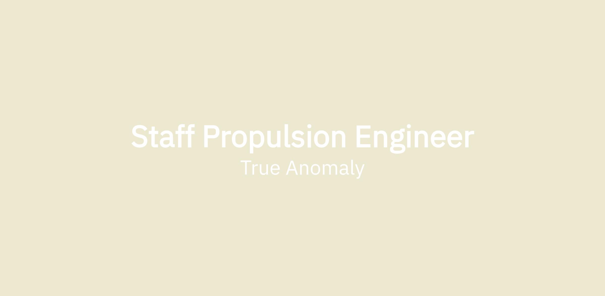 As a Staff Propulsion Development Engineer at True Anomaly, you will be responsible for design, build, and test of multiple propulsion systems including flight systems and ground test campaigns in the development of our spacecraft. You will be a technical expert for the Propulsion team providing knowledge and mentorship to other engineers. This is an opportunity to design and develop our next generation vehicles, shaping the future of space exploration from the ground up.