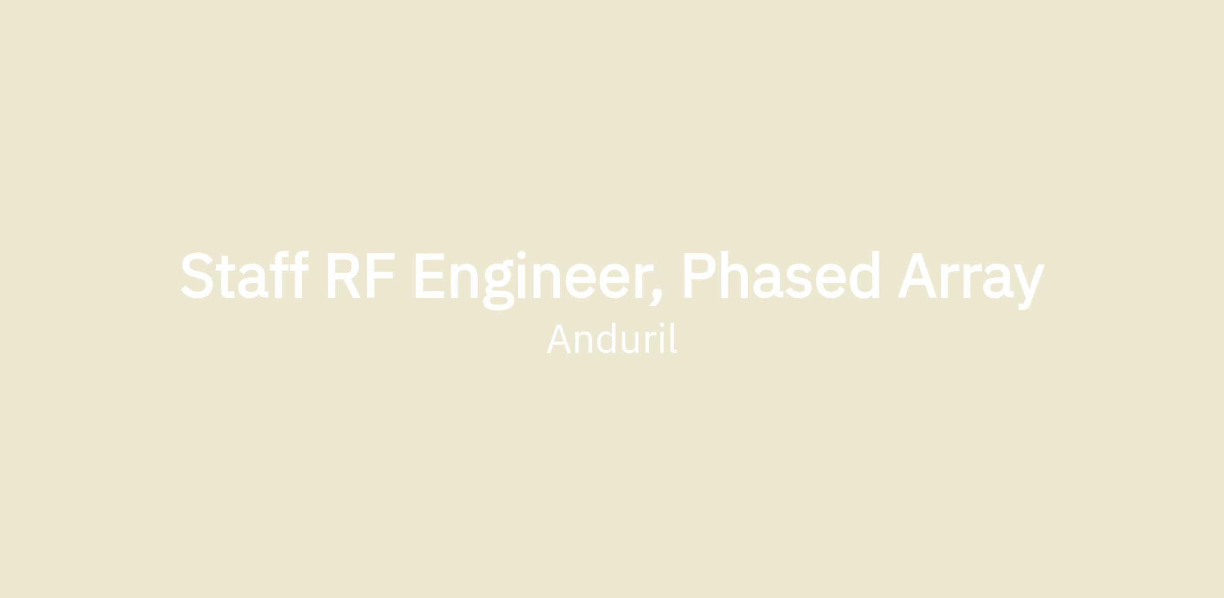 The Anduril Battlespace Awareness Radar team develops state-of-the-art radar systems, deployed to tackle the most significant security challenges of America and its allies. The Radar team is seeking an experienced Staff RF Engineer to help us design, test, and deploy the next generation of US radars. The Radar team is responsible for all aspects of radar system development, from the ideation stage through initial production. In this role, you will work closely with an interdisciplinary technical team to define radar architectures, design solutions, build prototypes, perform testing, and mature the prototypes into products.