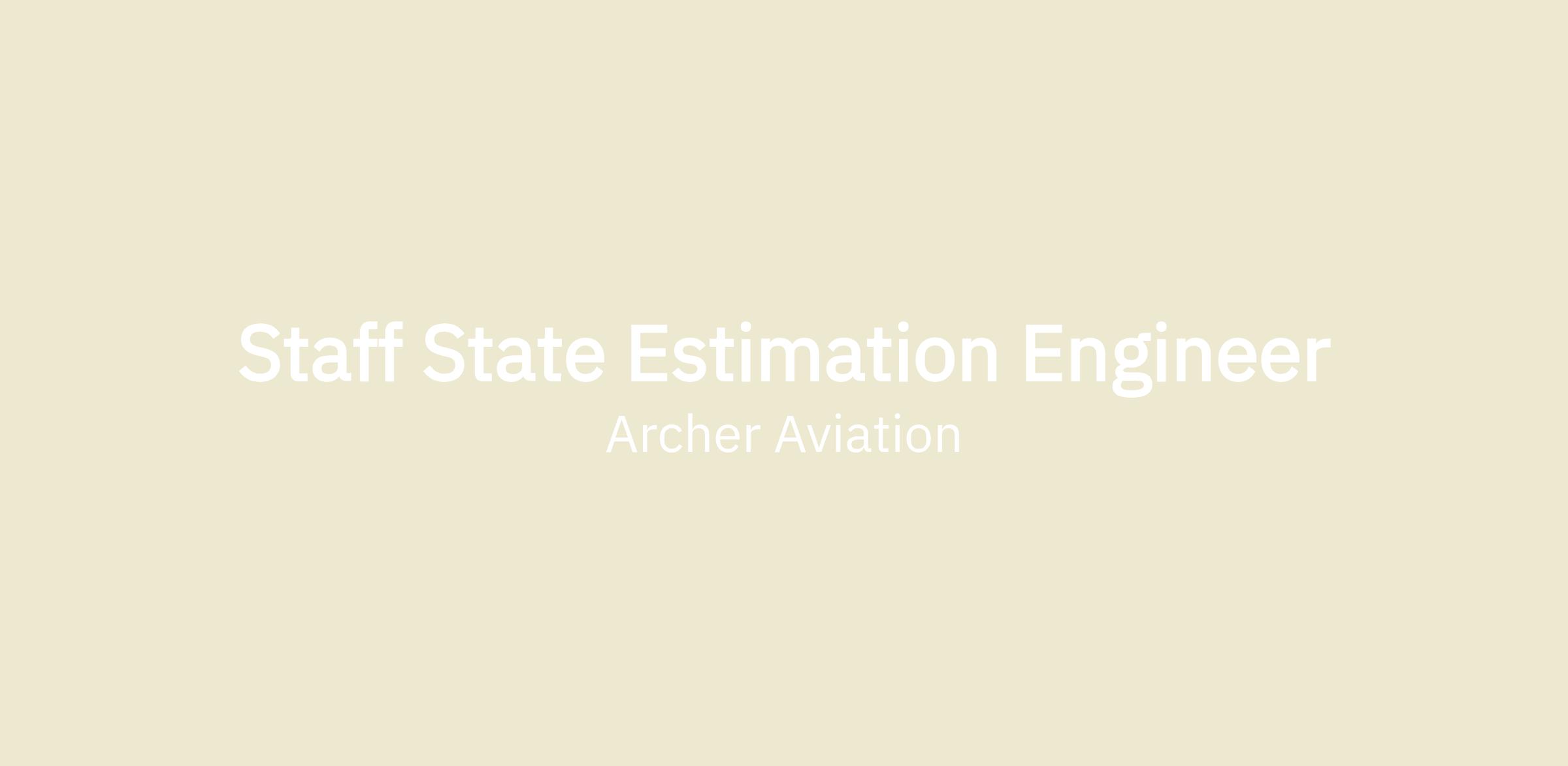- Previous experience with flight control or state estimation systems for aircraft such as eVTOLS, helicopters, or fixed-wing airplanes.