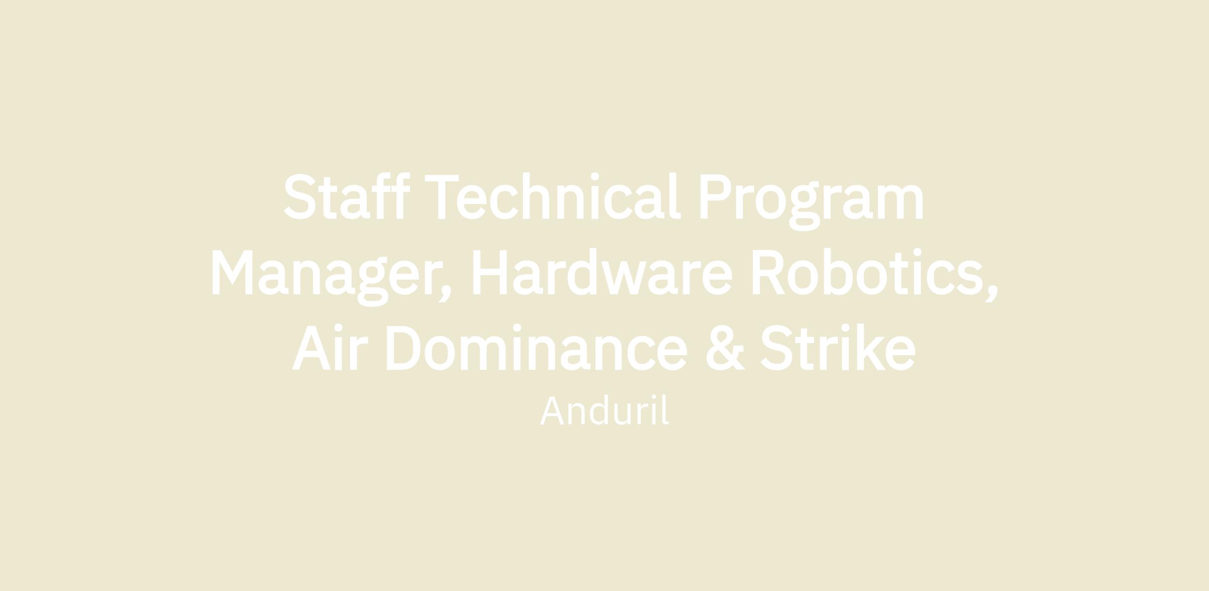 Staff Technical Program Manager, Hardware Robotics, Air Dominance & Strike