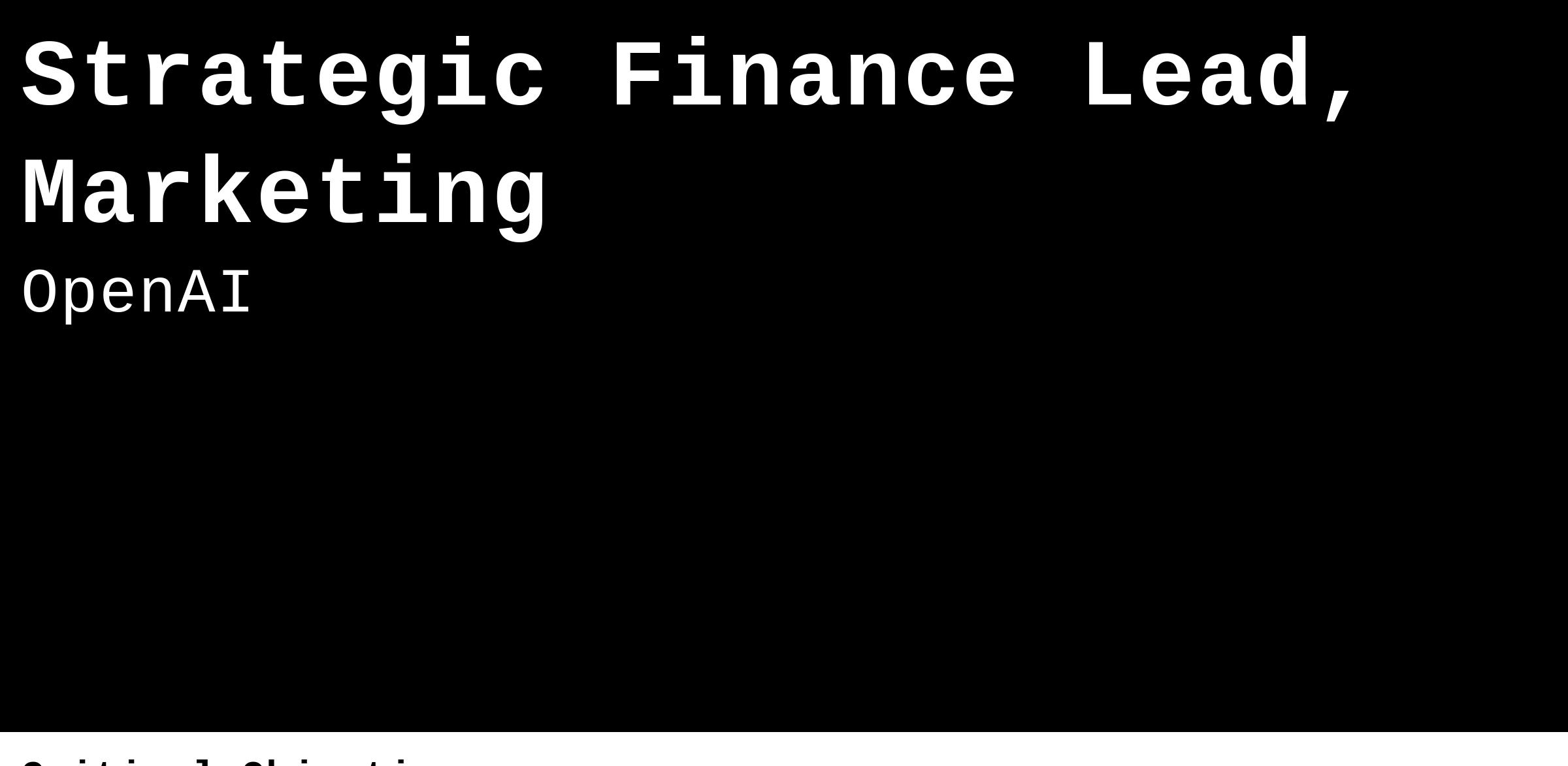 We are hiring a Strategic Finance Lead to own and manage the financial performance of our marketing efforts, directly supporting our Chief Marketing Officer. You will provide critical insights and recommendations on financial planning, budget allocation, and ROI optimization.