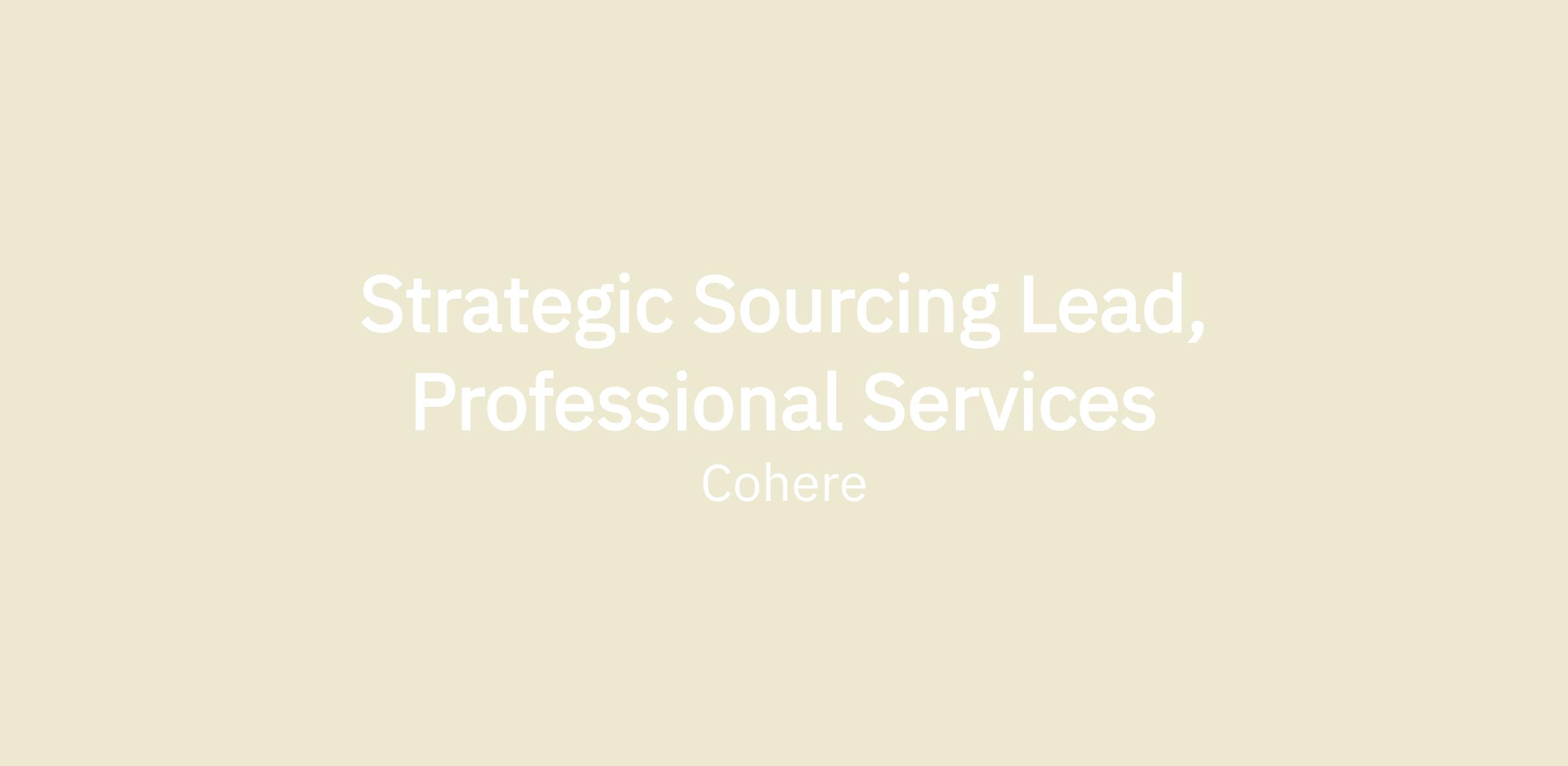 Cohere seeks a Procurement Lead to own and scale our professional services procurement function. In this role you will be responsible for running these categories and creating strategies for such categories as we continue to grow rapidly. You will partner closely with FP&A, Accounting, Legal, and business stakeholders to build a world-class procurement function. This is an opportunity for a hands-on, strategic procurement leader who thrives in a high-growth environment, is comfortable navigating ambiguity, and can design scalable processes.