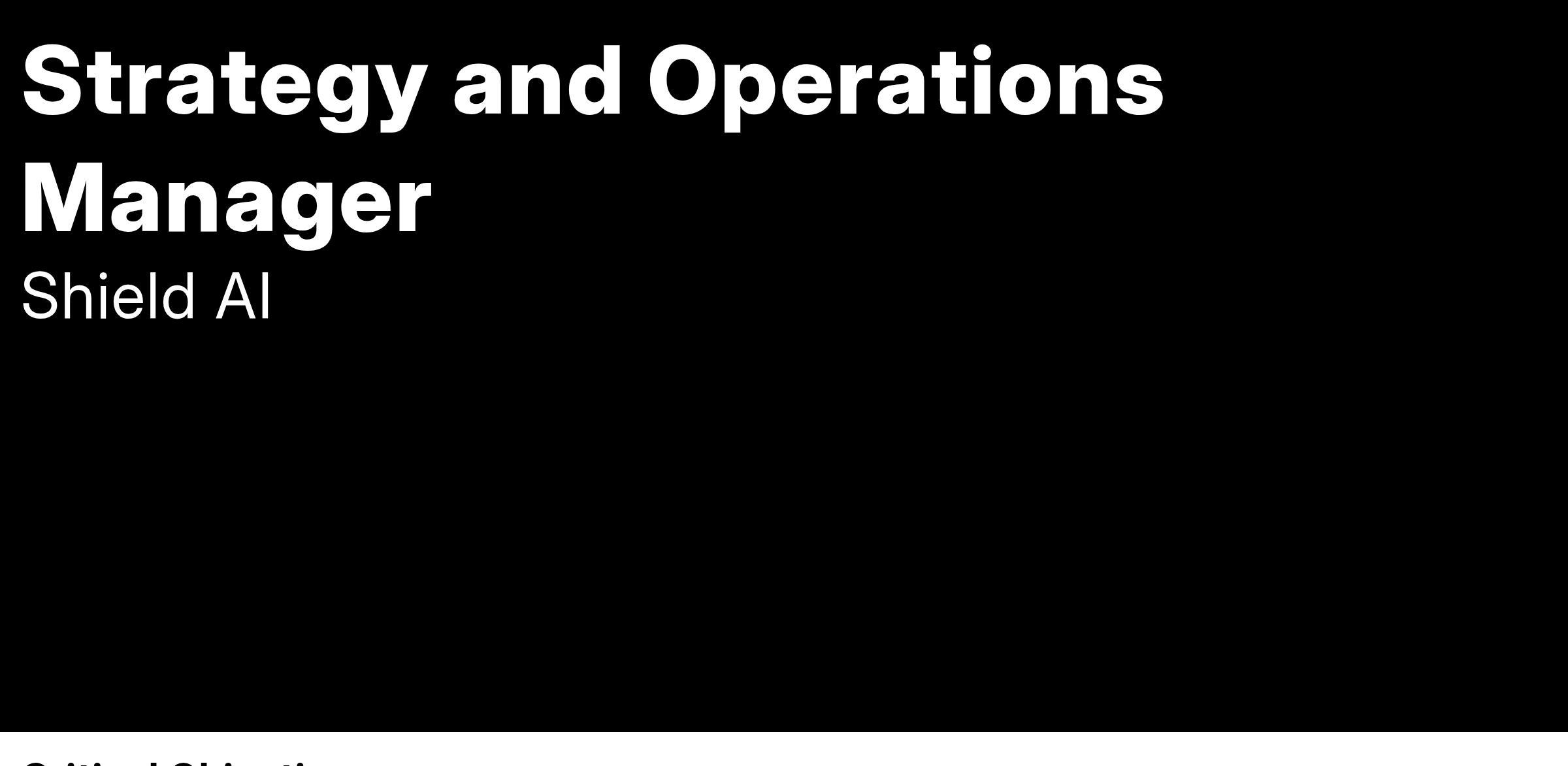 - 3-5 years of experience at a Defense Tech company or B2B Technology disruptor in a Strategy & Operations capacity or as a Chief of Staff within a fast-moving organization