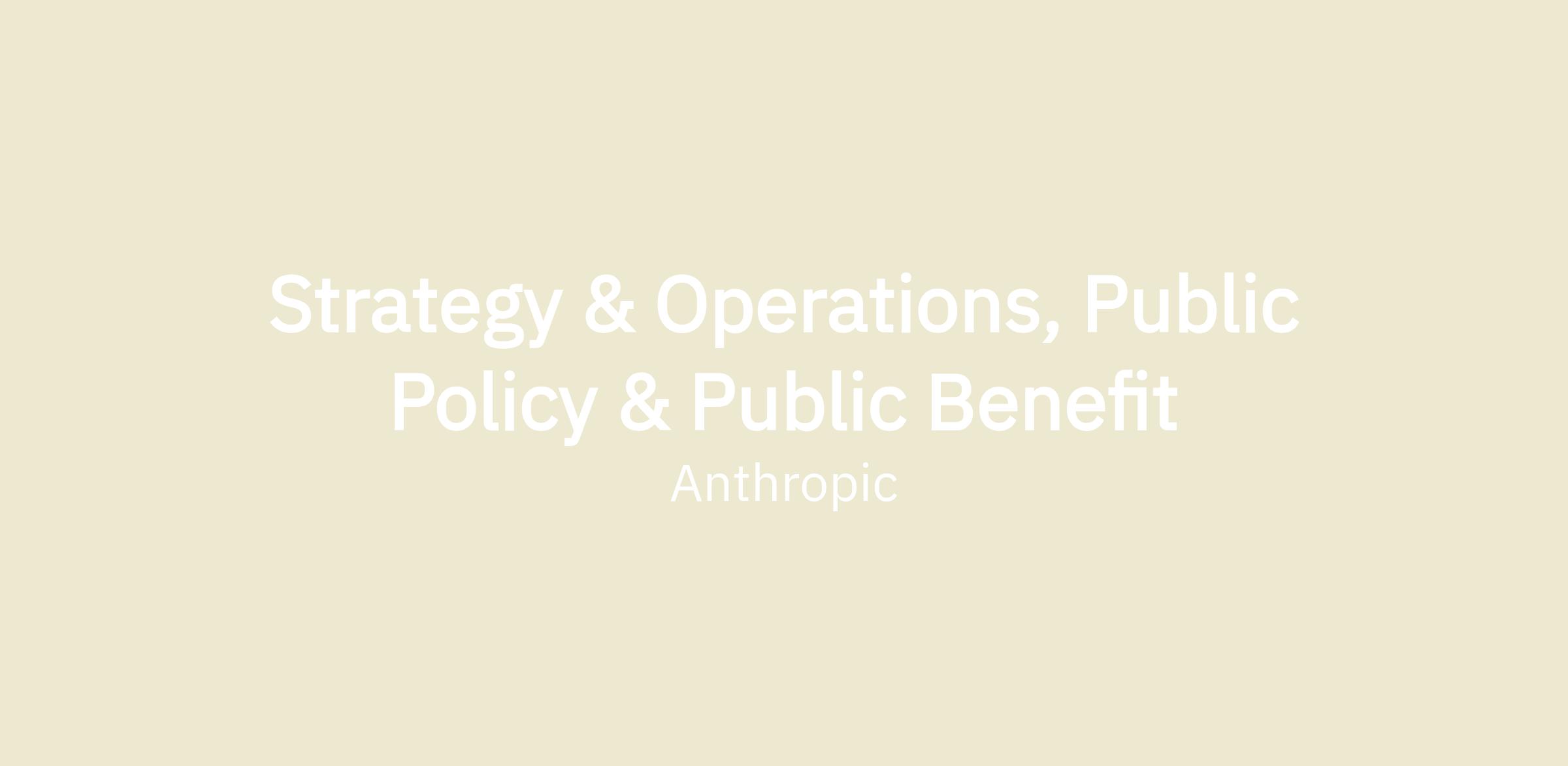 We are looking for a strategic operator to support the leadership of Anthropic's Public Policy and The Anthropic Institute. Our Public Policy team works with governments around the world to help shape AI governance, advancing priorities like model safety, transparency, and democratic leadership in AI. The Anthropic Institute studies the societal, economic, and governance implications of advanced AI, and reports candidly on what we're learning.
