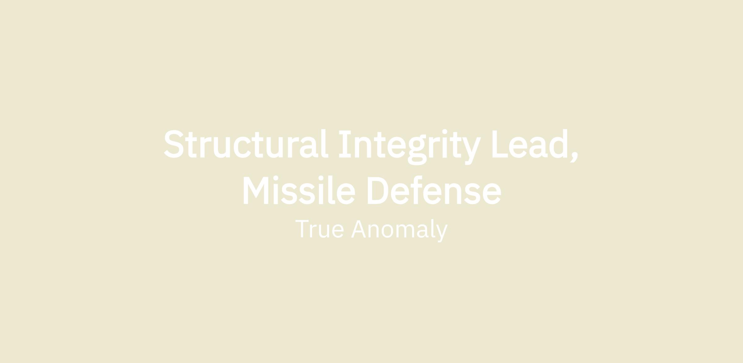 True Anomaly is seeking a highly accomplished Structural Integrity Lead to lead the technical execution of a next-generation missile defense program. This is a generational opportunity to architect a solution to some of the most challenging mission sets in missile defense, not to mention aerospace engineering as a whole. You will establish and enforce processes and standards ensuring structural integrity across the SBI program. You will develop and validate structural models and manage structural margins across configuration while defining and maintain fracture control, fatigue, creep, and damage tolerance methodologies. Finally you will establish the processes by which verification and test activities related to structural integrity are performed.