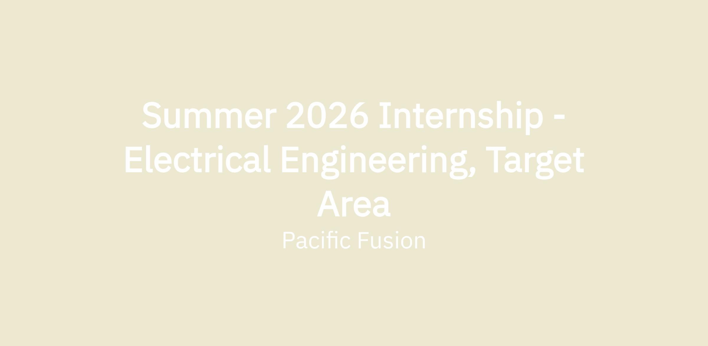 Pacific Fusion is seeking an exceptional Electrical Engineering Intern - Target Area Engineering to join our dynamic team and create the path to commercial fusion energy. In your role as a mechanical engineering intern, you will get to own a project through the planning, design, assembly, and testing phases of development. Our intention is for our interns to get experience in cradle to grave design as well as hands-on experience building and testing these systems. All of our intern projects are high priority and value-added efforts that directly contribute to the successful development of our fusion system.